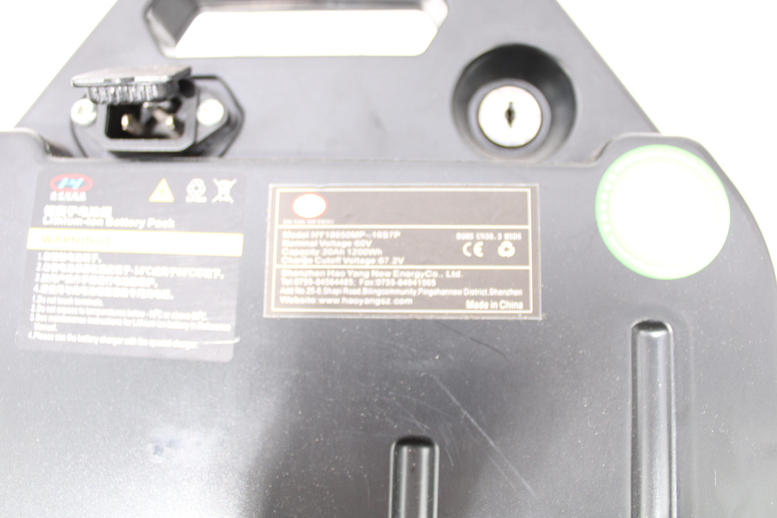 Artikel: Accu 60 volt 20ah. Dit onderdeel is afkomstig van een city coco elektrische chopper.