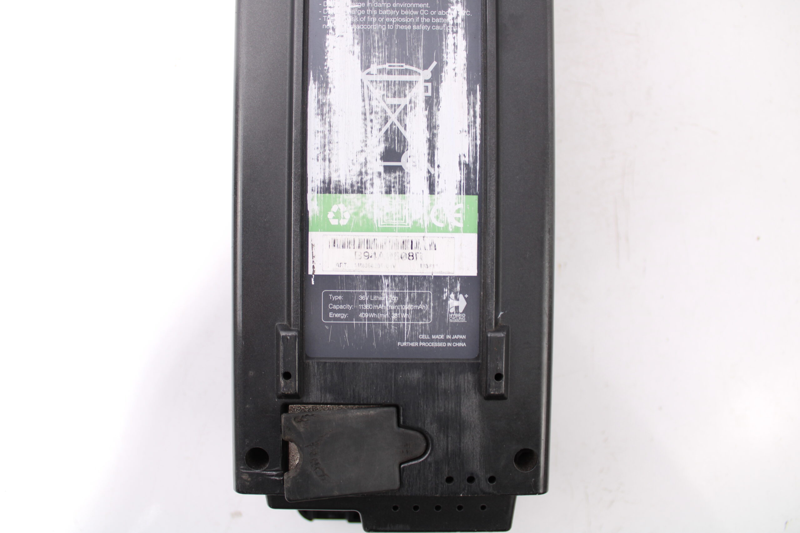 Artikel: Accu powerpack 36v 409Wh. Dit onderdeel is afkomstig van een Giant Triple X elektrische fiets. Het betreft een originele onderdeel dat verkeert in defecte staat, met mogelijke gebruikssporen.