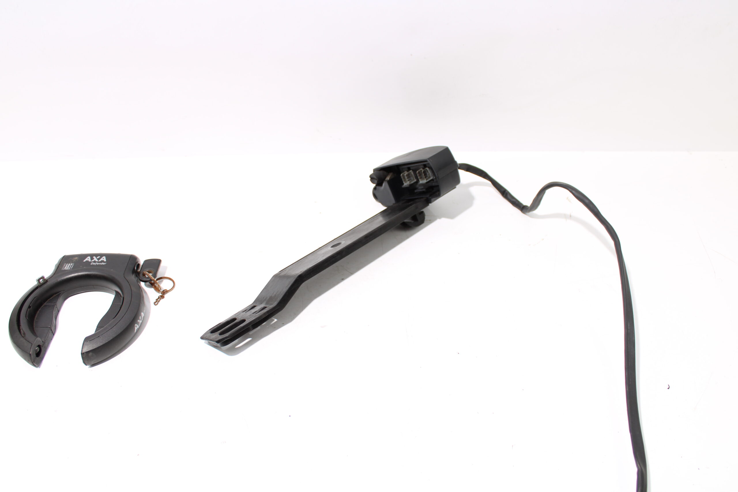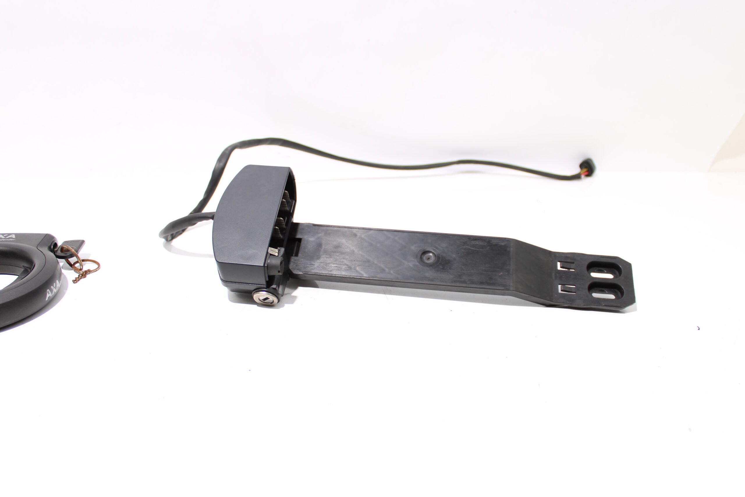 Artikel: accu slede / dockingstation (sleutel past in allebei de sloten). Dit onderdeel is afkomstig van een Batavus Garda elektrische fiets.