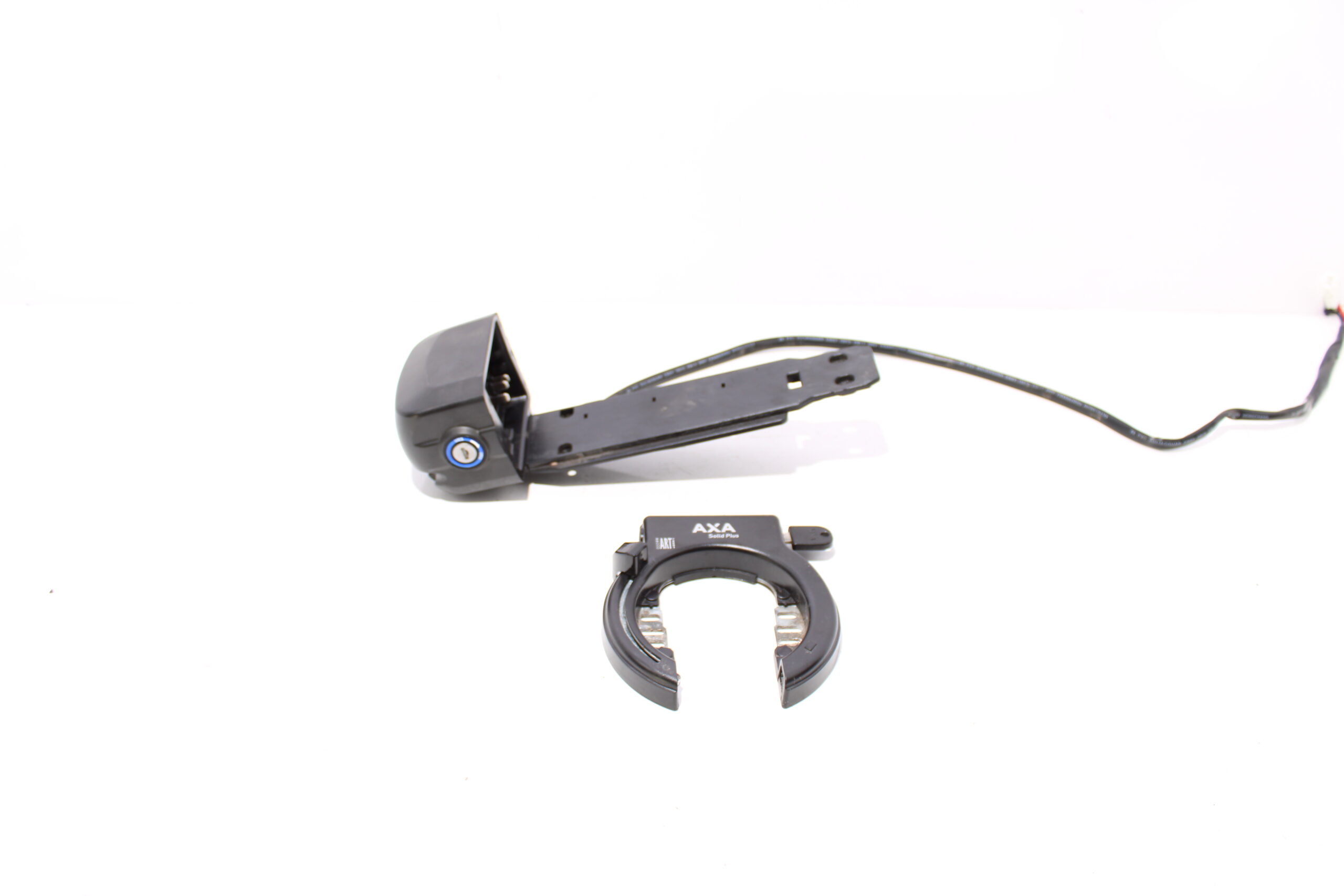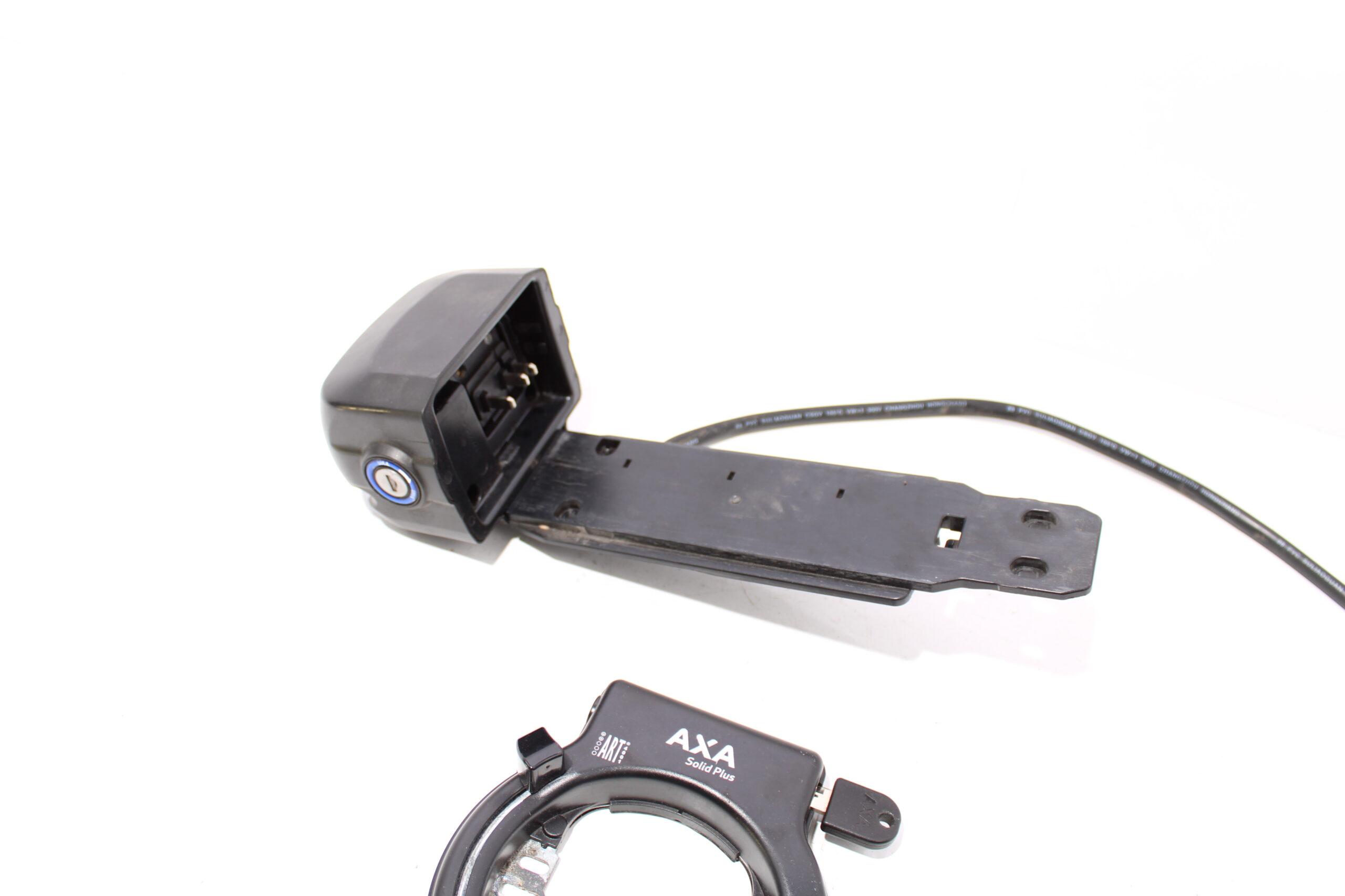 Artikel: Accu slede / dockingstation met ringslot. Dit onderdeel is afkomstig van een Giant Ease-E elektrische fiets.