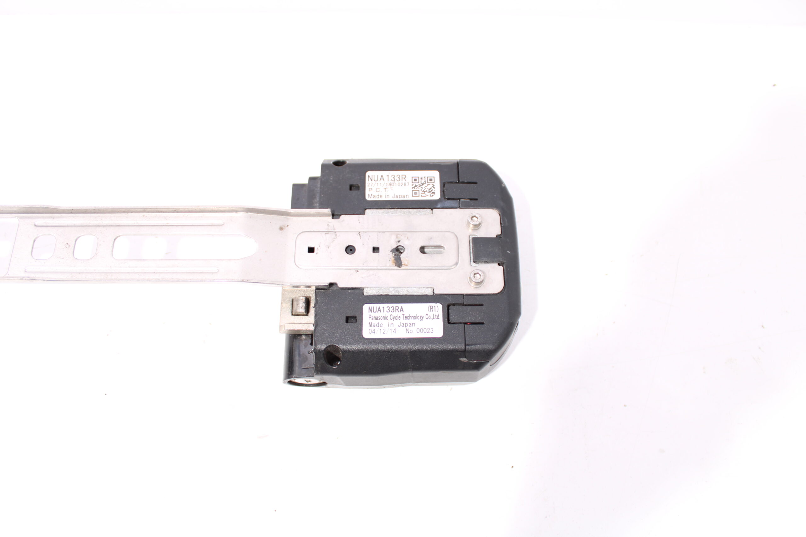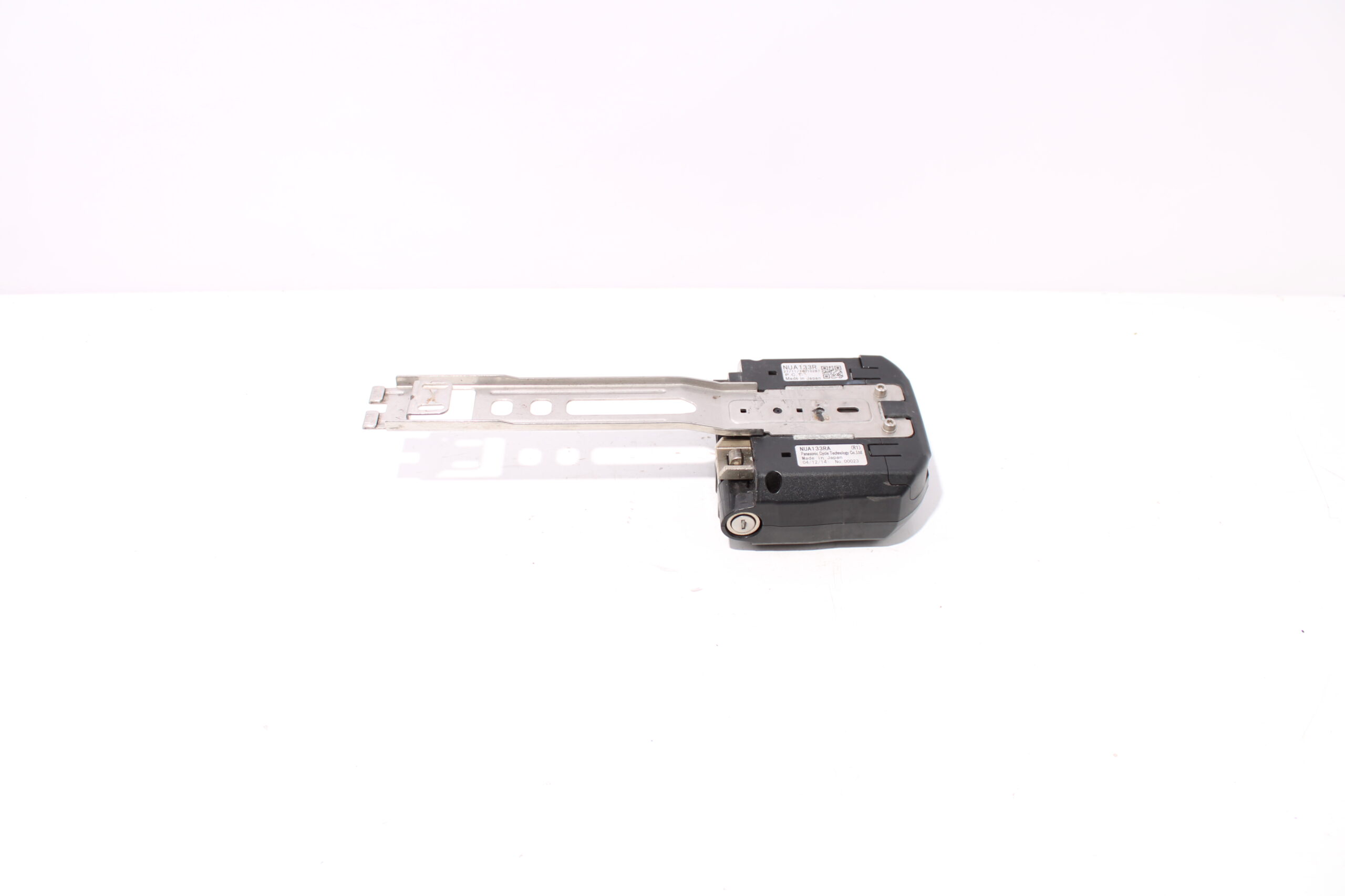 Artikel: Accu slede / dockingstation van Panasonic (NUA133R). Dit onderdeel is afkomstig van een Gazelle Orange Comfort elektrische fiets. Het betreft een originele onderdeel dat verkeert in goede staat, met mogelijke gebruikssporen. geen sleutels aanwezig