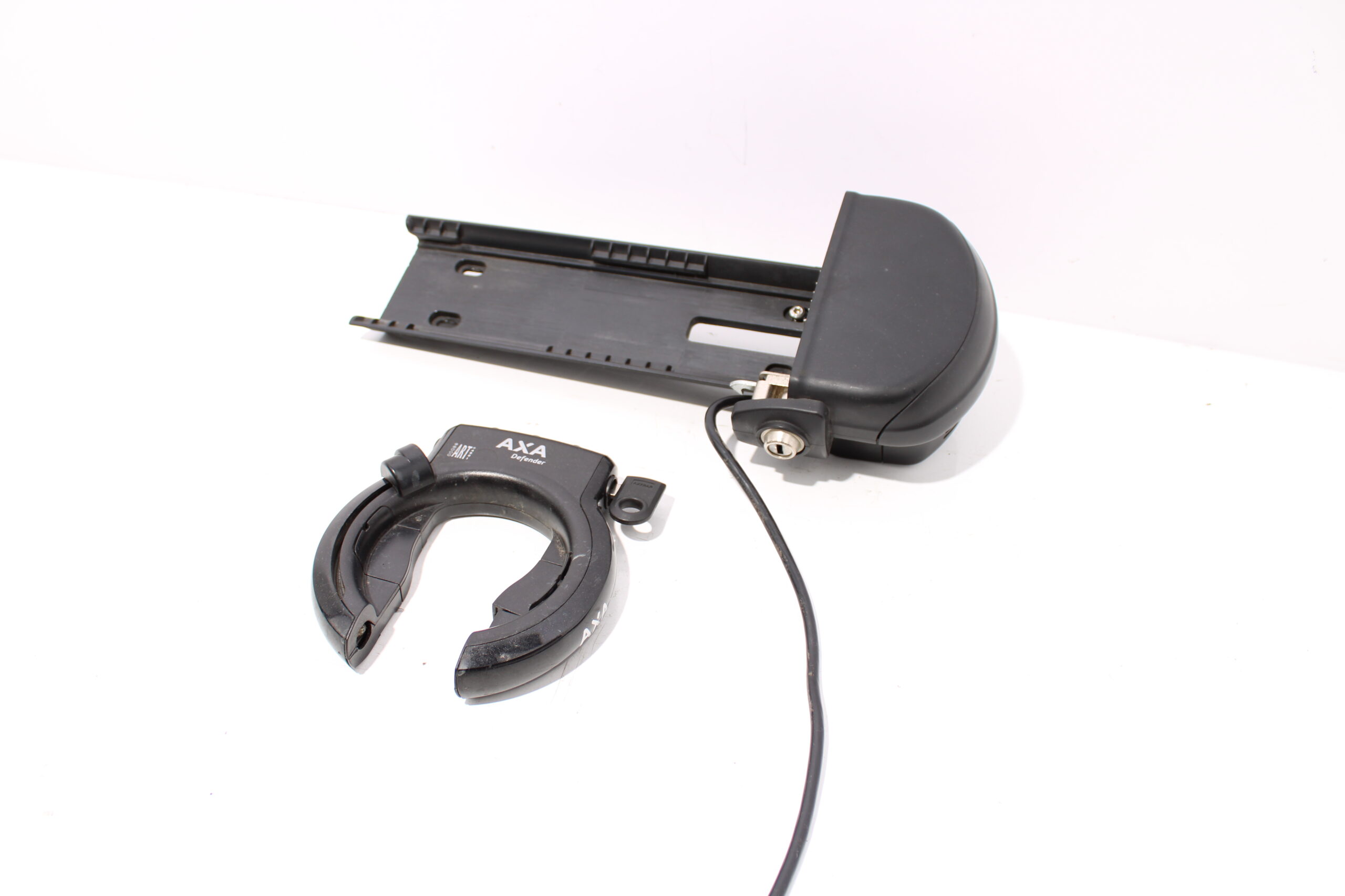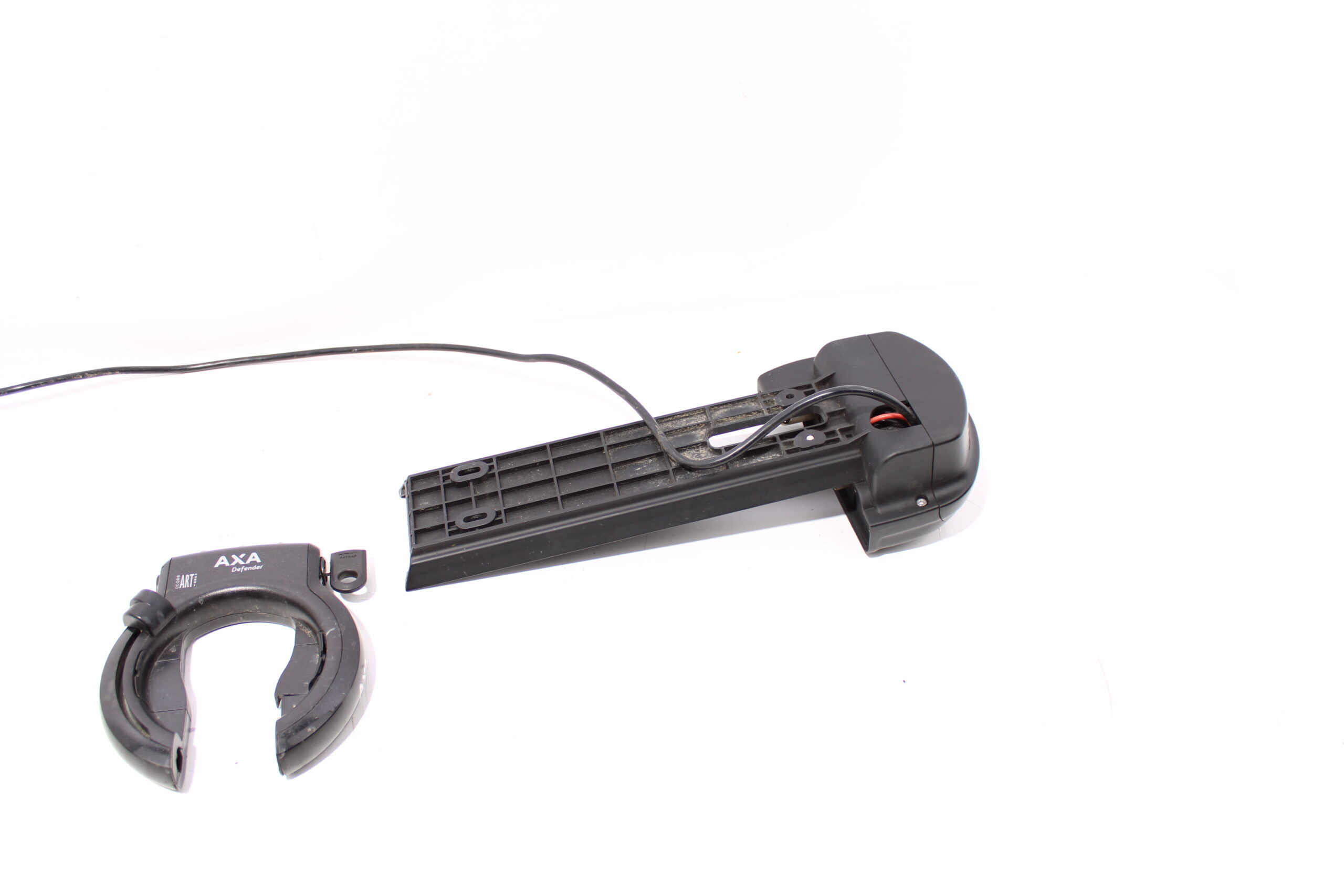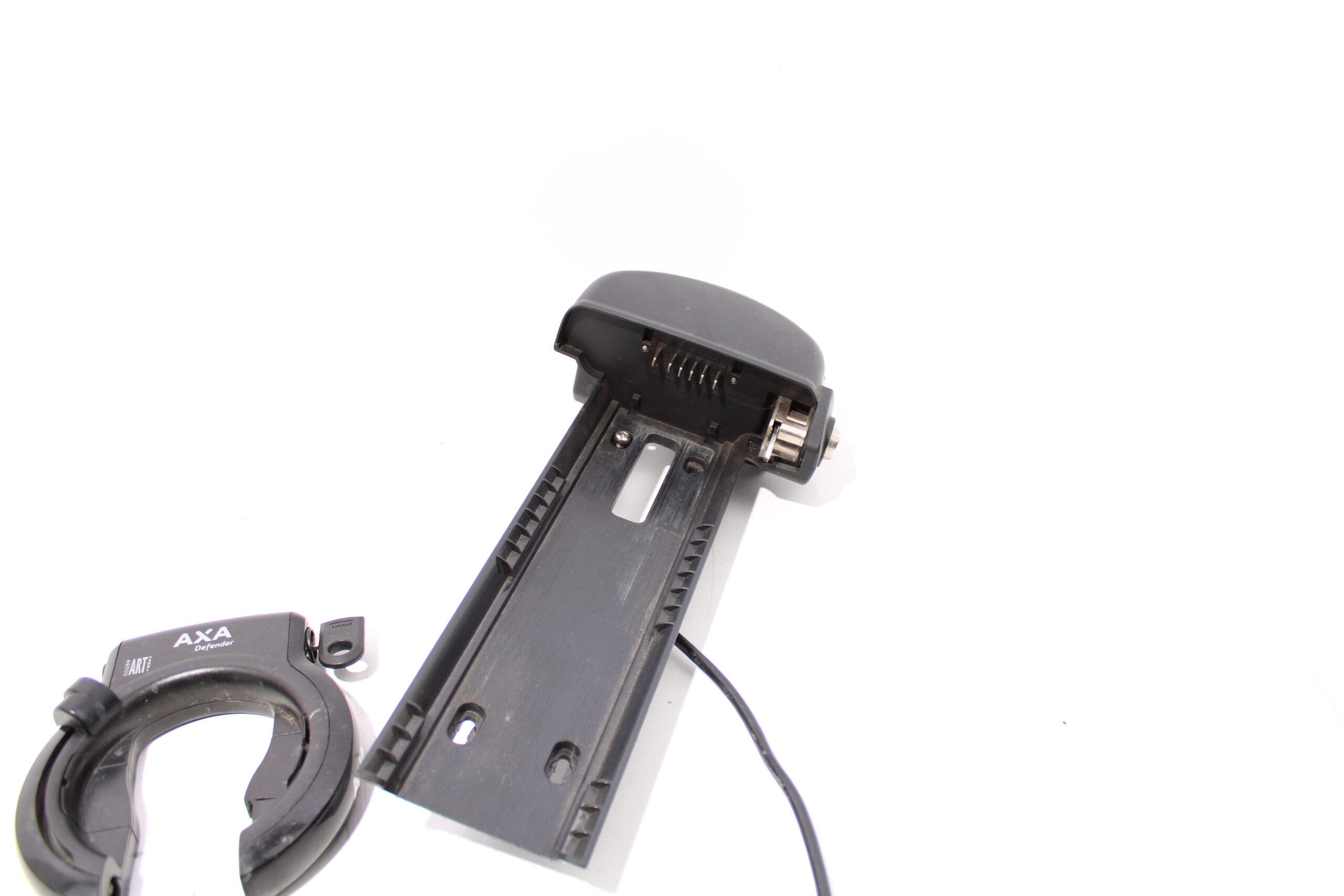 Artikel: Accu slede / dockingstation geschikt voor e-motion accu's, de sleutel past in allebei de sloten. Dit onderdeel is afkomstig van een Batavus Wayz Ego elektrische fiets.