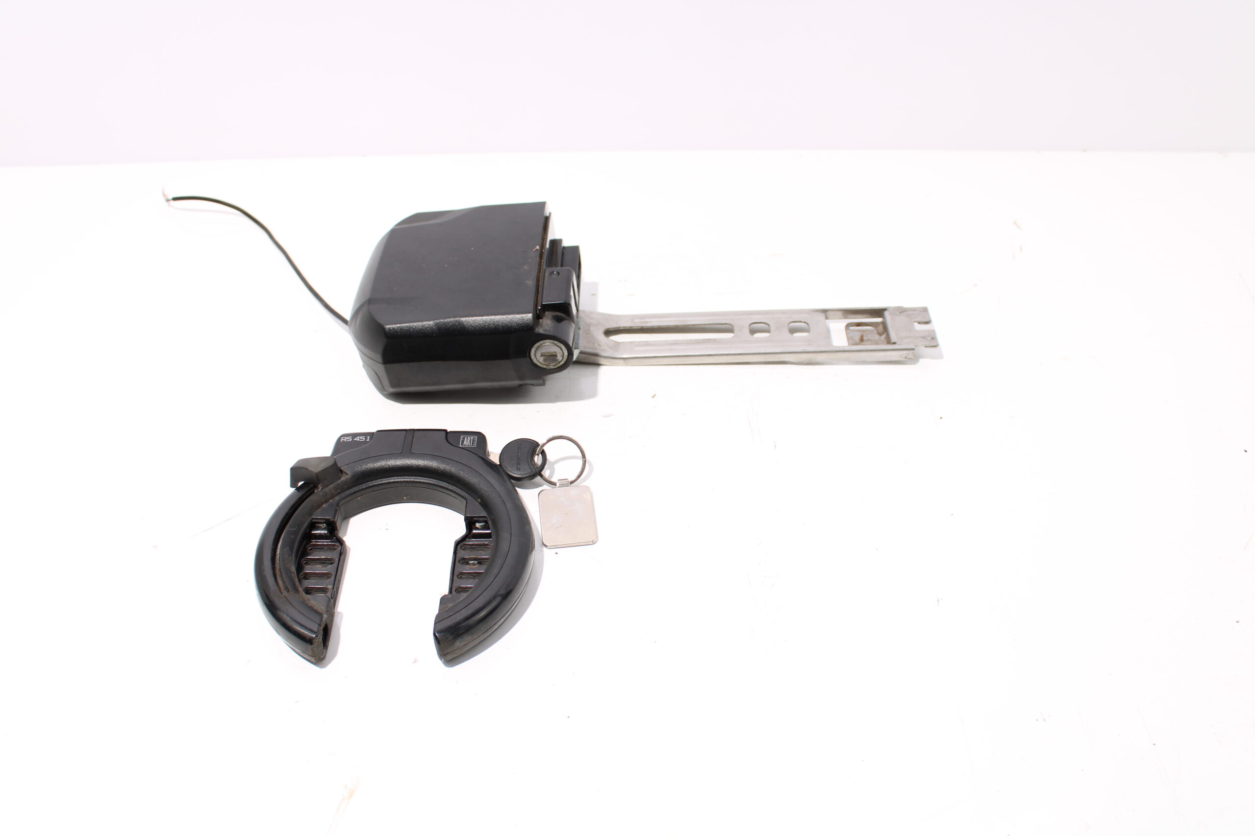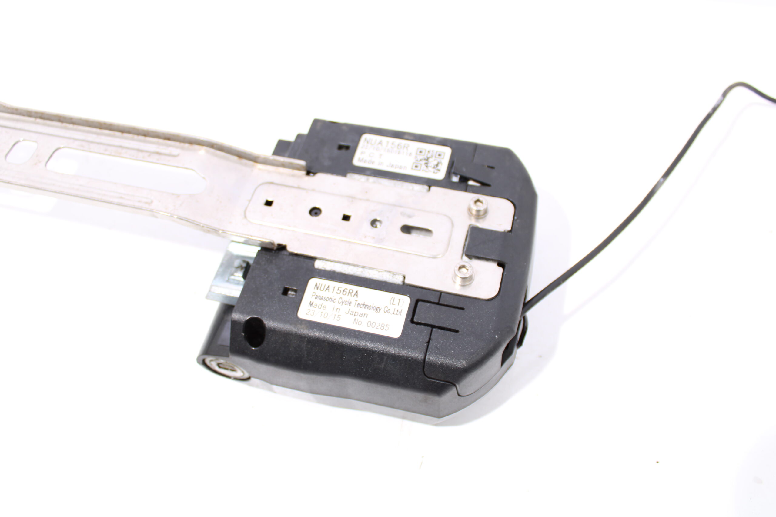 Artikel: Accu slede NUA156RA voor Panasonic accu's, ook zit er een ringslot bij waarbij de sleutel in allebei de sloten past. Dit onderdeel is afkomstig van een Gazelle orange comfort c8 elektrische fiets.