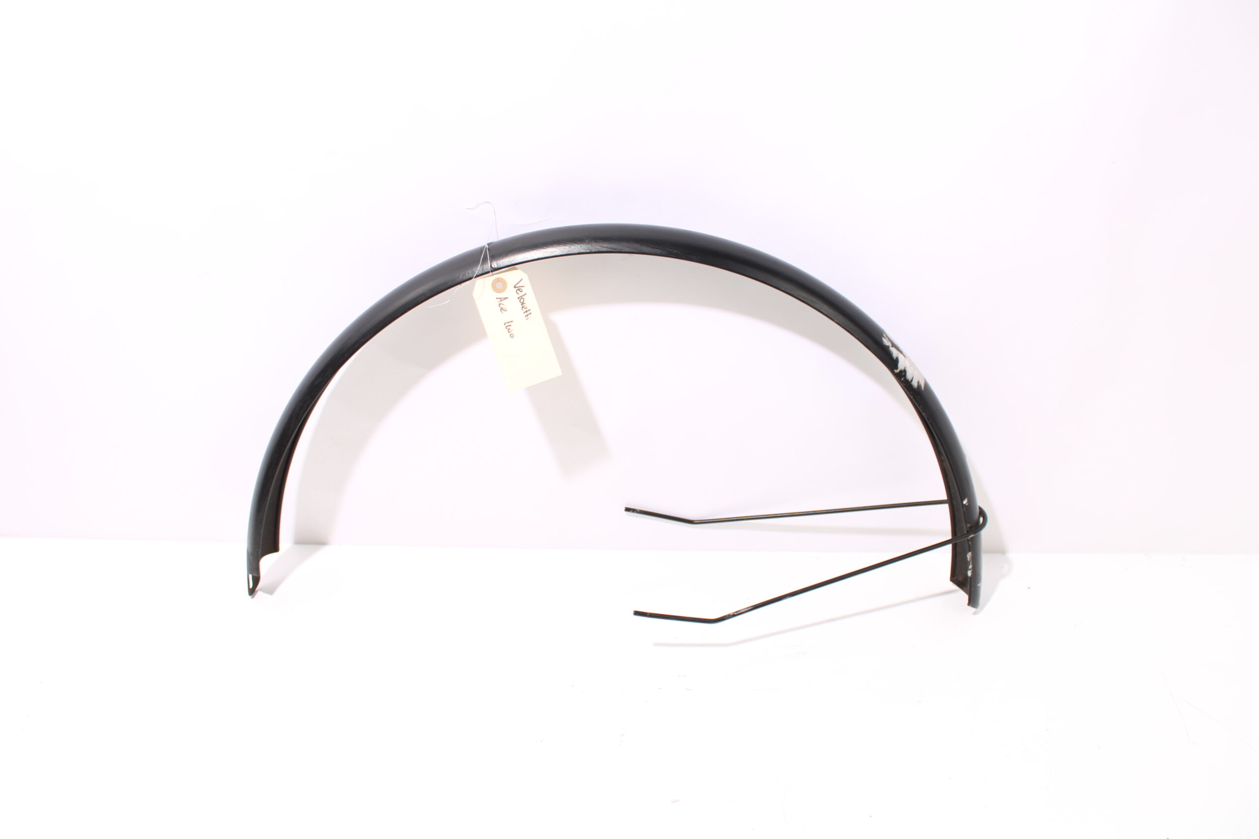 Artikel: Achterspatbord 28 inch zwart. Dit onderdeel is afkomstig van een Veloretti Ace Two elektrische fiets. Het betreft een originele onderdeel dat verkeert in goede staat, met middelmatige gebruikssporen. Lak is niet heel mooi, lijkt geschuurd.