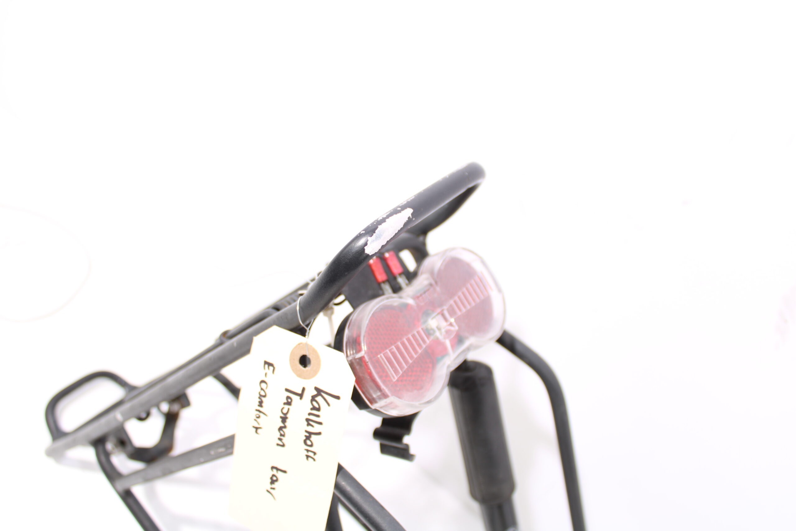 Artikel: Bagagedrager 28 inch zwart met lamp. Dit onderdeel is afkomstig van een Kalkhoff Tasman Tour elektrische fiets.