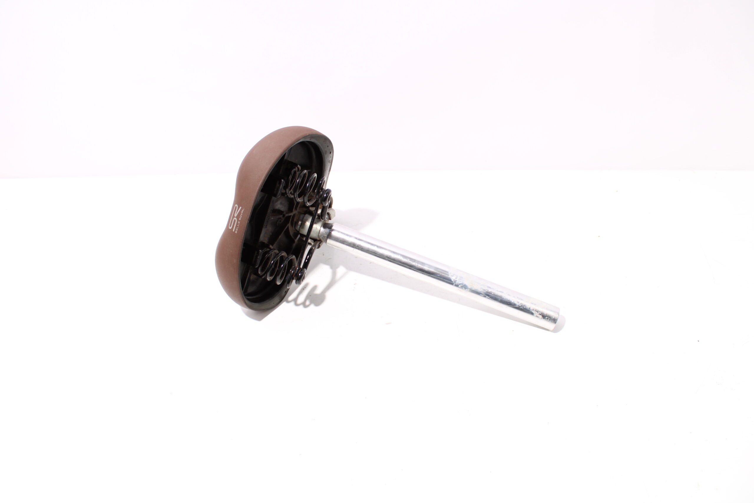 Artikel: Bruin zadel van het merk Selle Royal met een 30,8mm zadelpen. Dit onderdeel is afkomstig van een Giant Triple X elektrische fiets. Het betreft een originele onderdeel dat verkeert in goede staat, met mogelijke gebruikssporen.