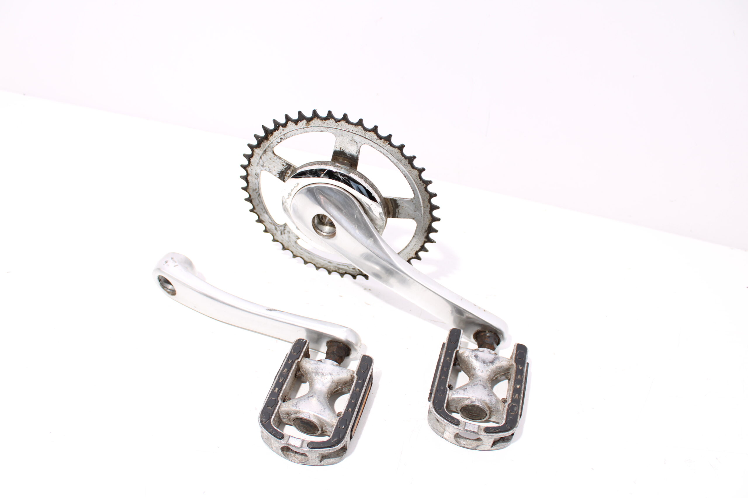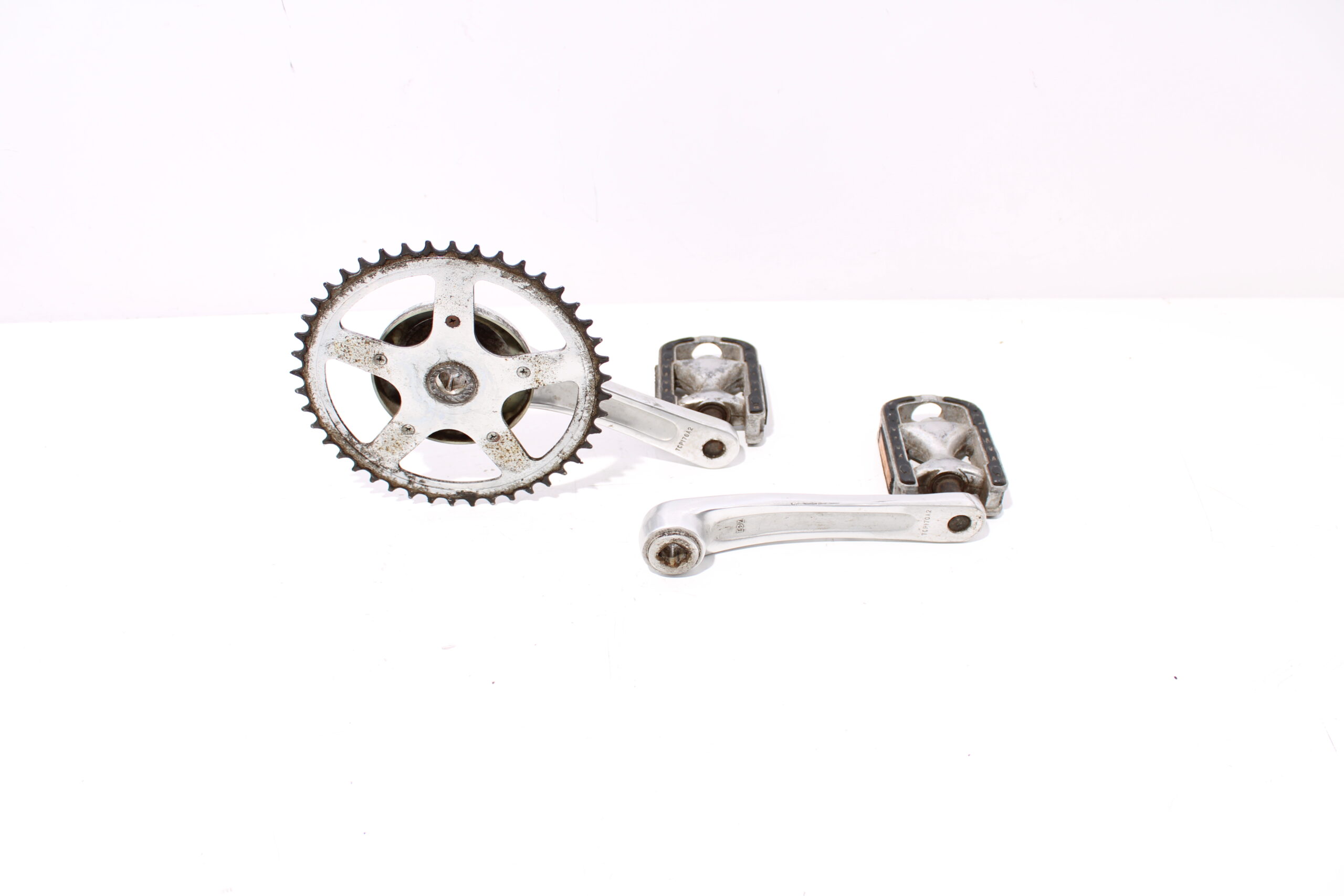 Artikel: Cranks, trappers en tandwiel. Dit onderdeel is afkomstig van een Qwic Base 2 elektrische fiets.