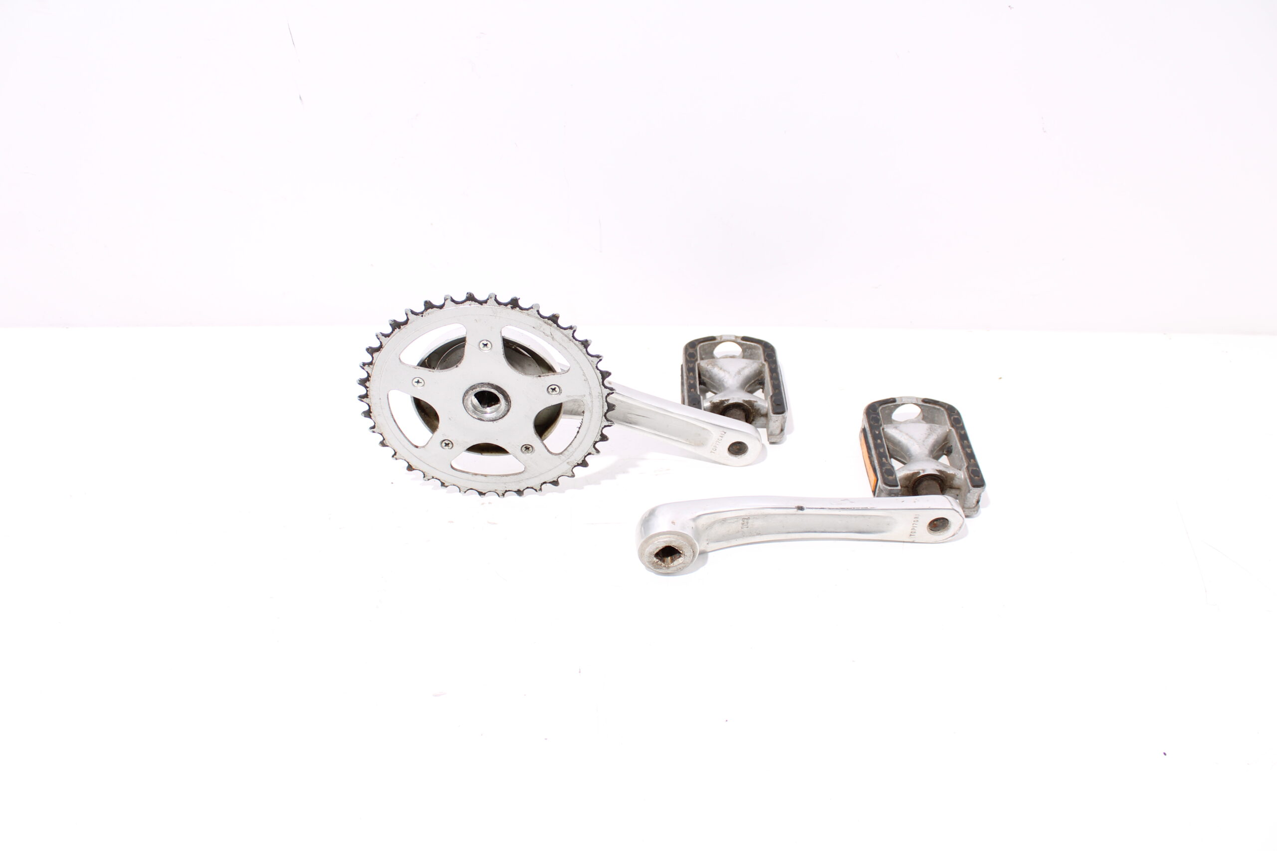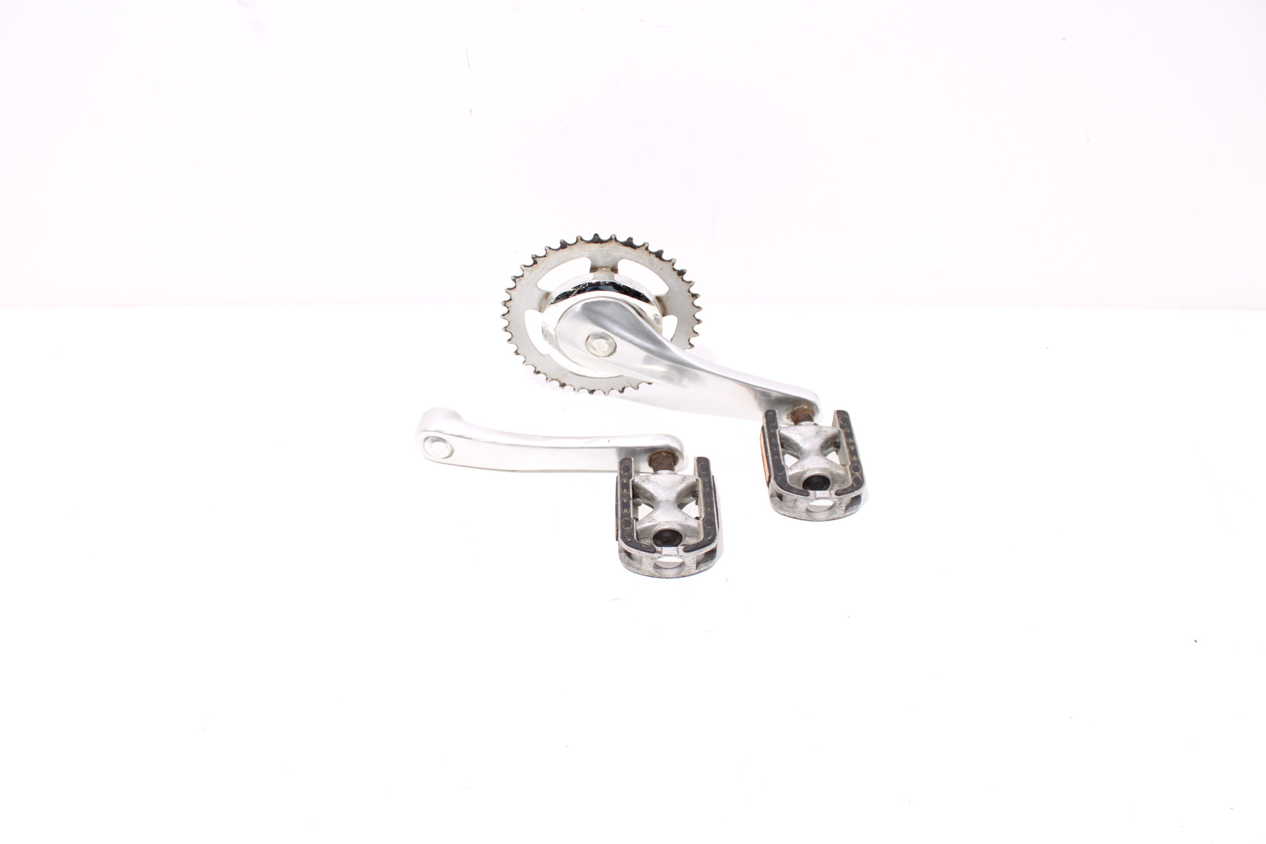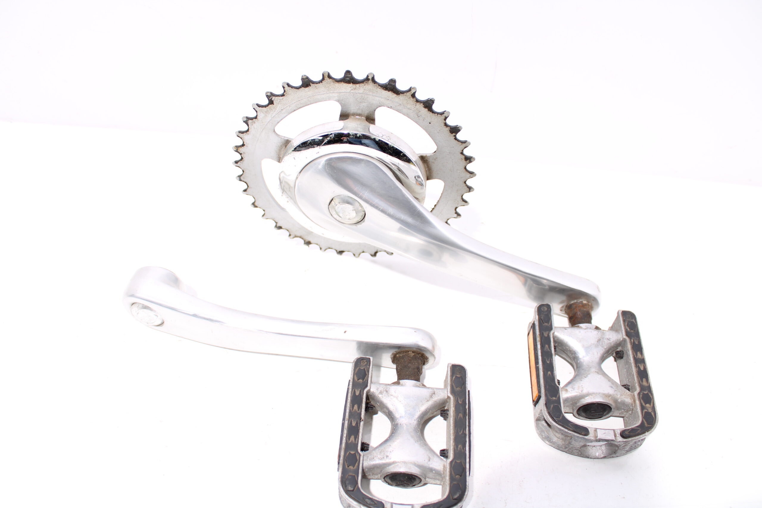 Artikel: Cranks, trappers en tandwiel. Dit onderdeel is afkomstig van een Stella Milano elektrische fiets.