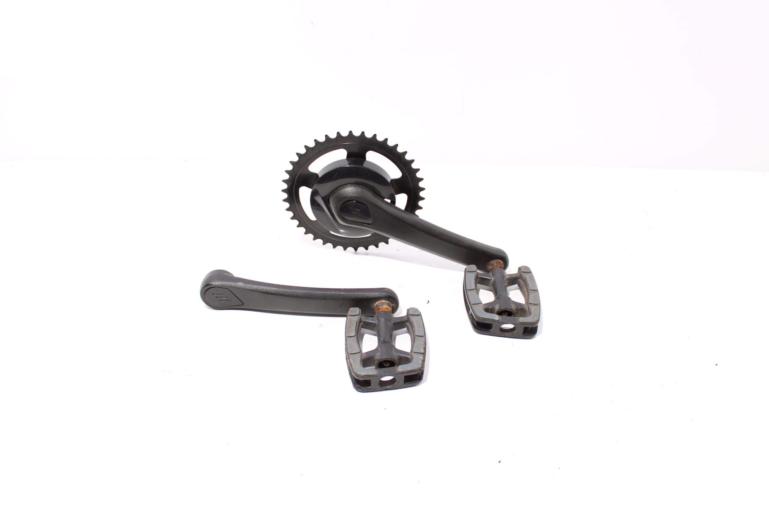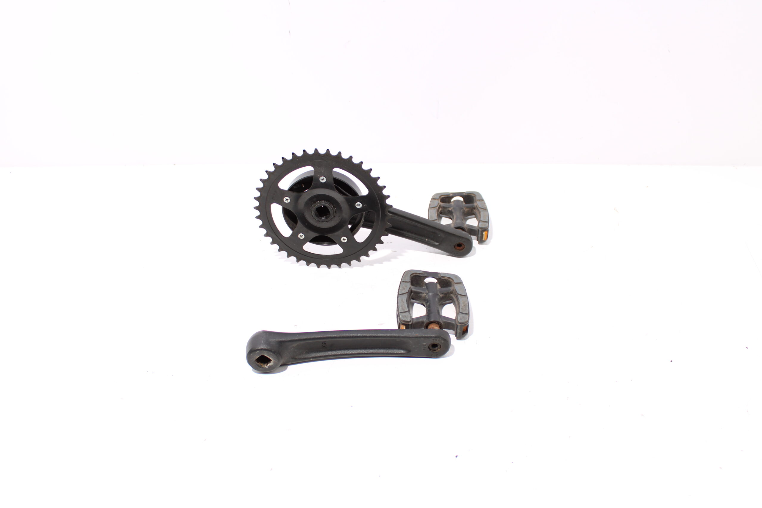 Artikel: Cranks, trappers met tandwiel. Dit onderdeel is afkomstig van een elektrische fiets.