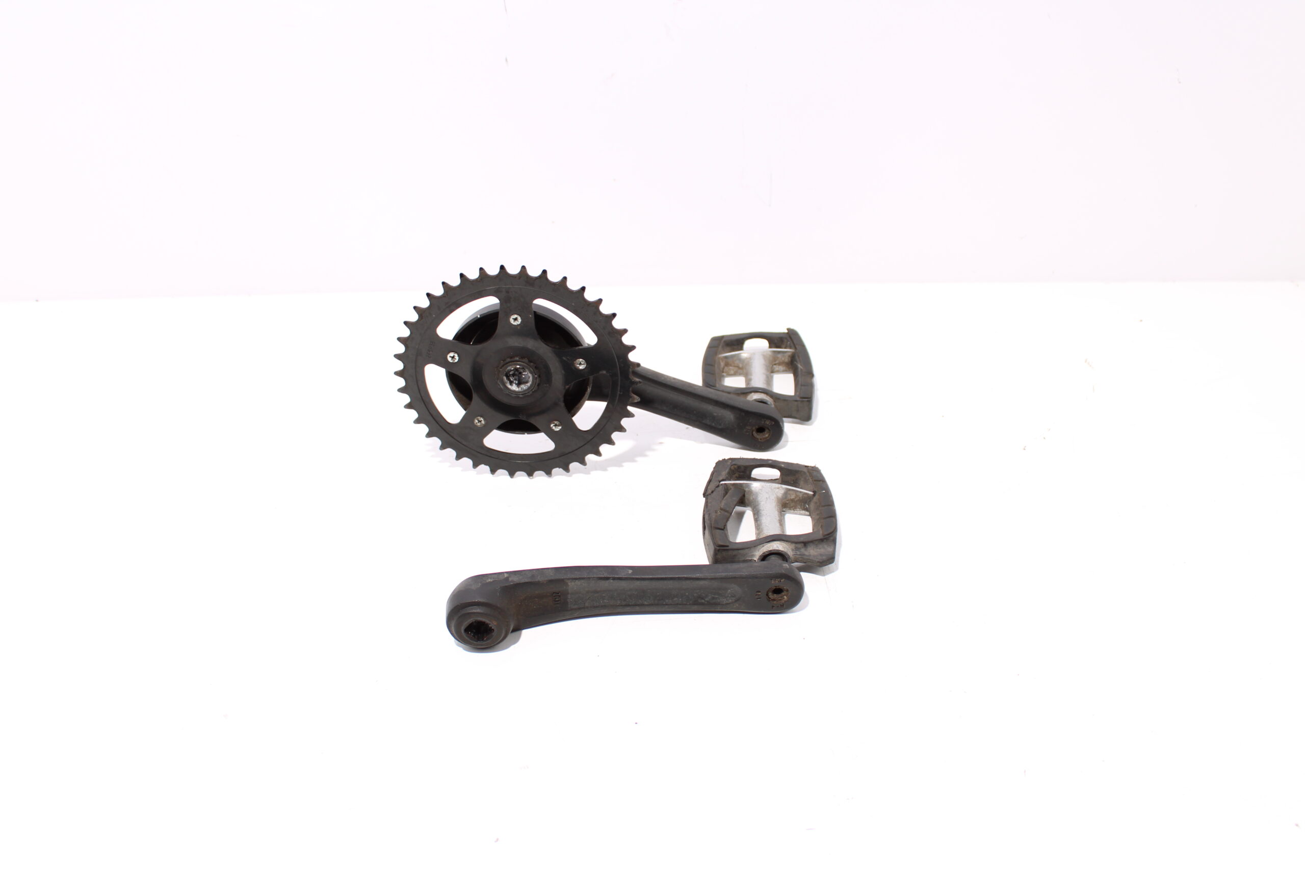 Artikel: Cranks, trappers en tandwiel. Dit onderdeel is afkomstig van een VanDijck Dagan elektrische fiets.