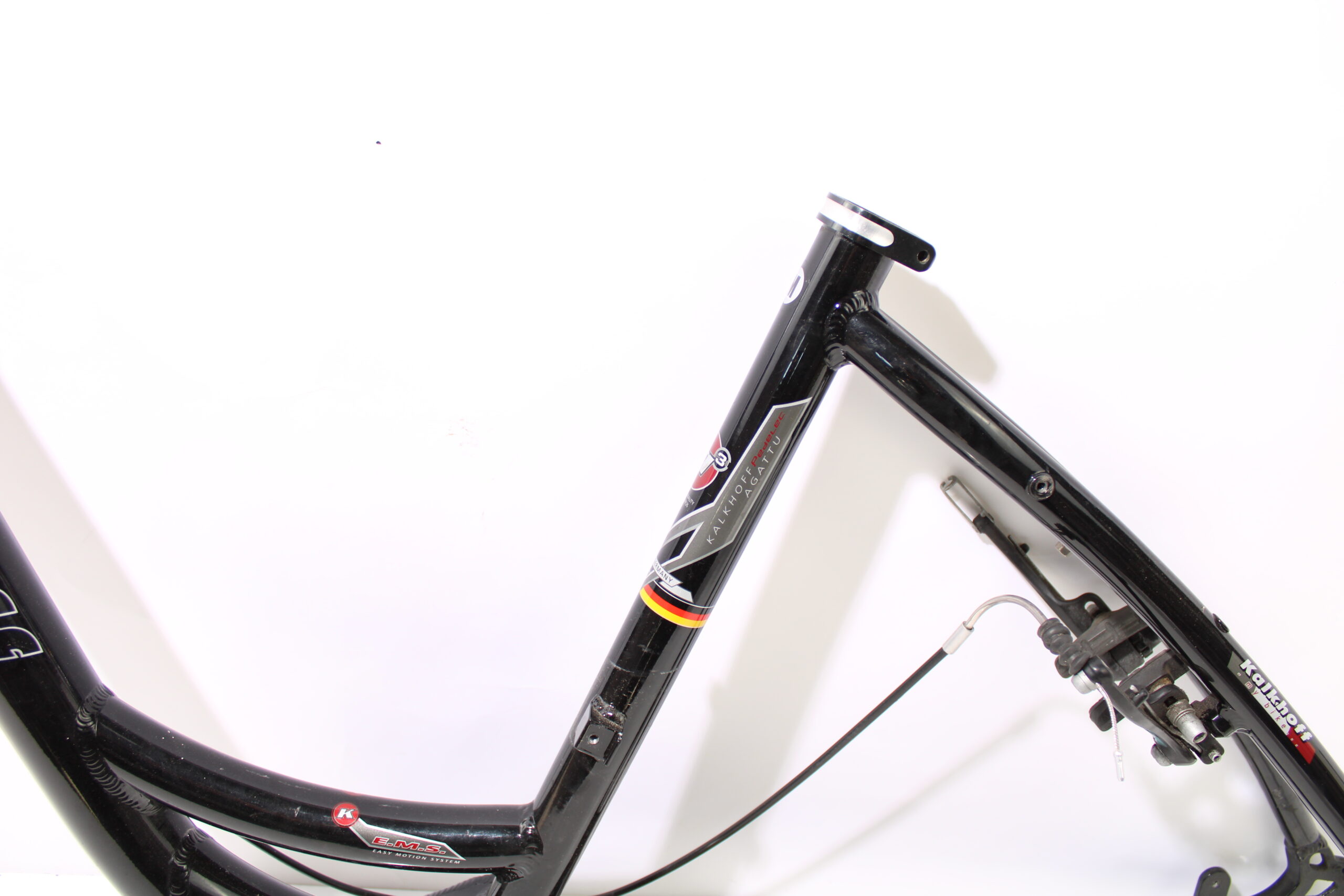 Artikel: Frame met maat M. Dit onderdeel is afkomstig van een Kalkhoff Agattu elektrische fiets. Het betreft een originele onderdeel dat verkeert in goede staat, met mogelijke gebruikssporen.