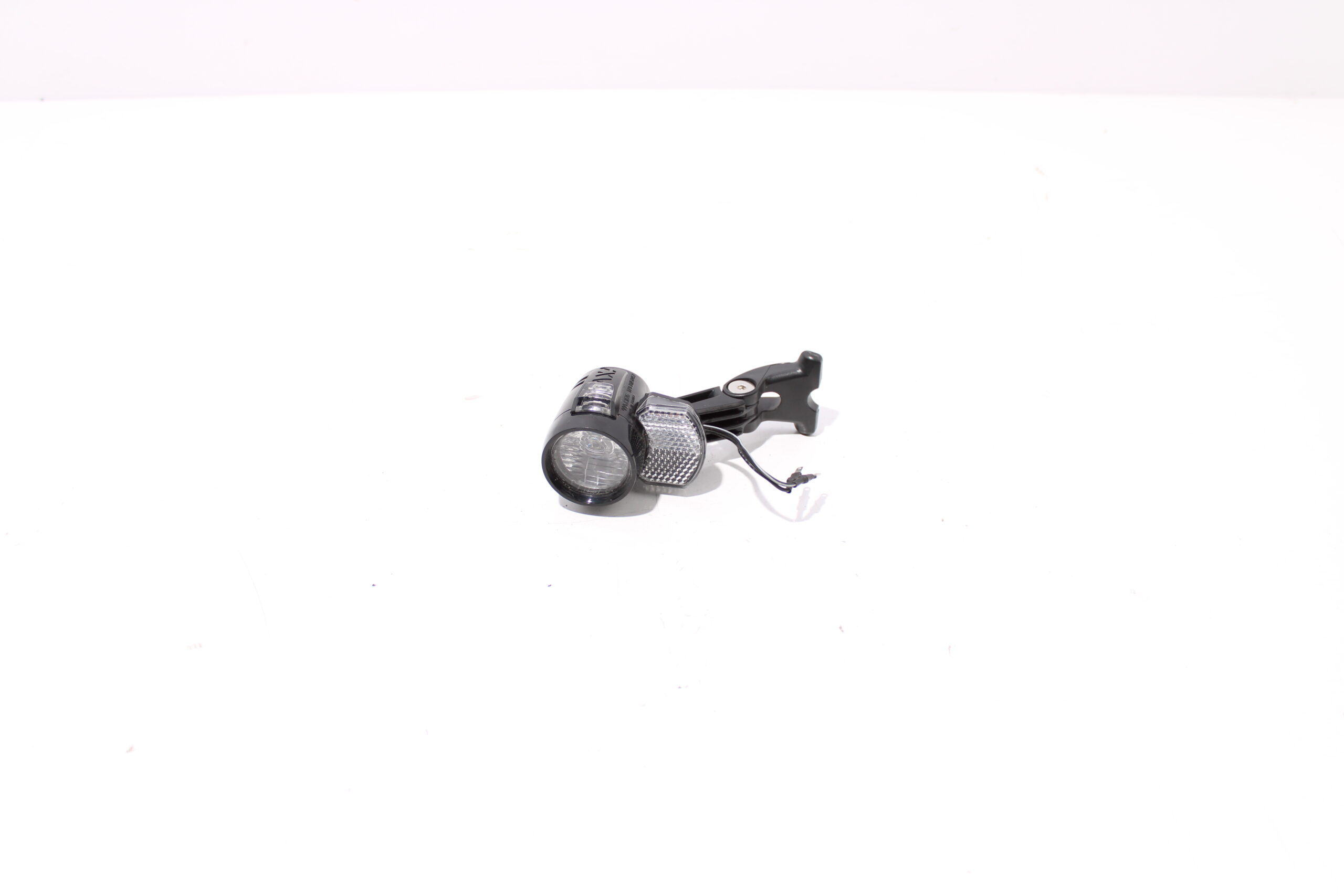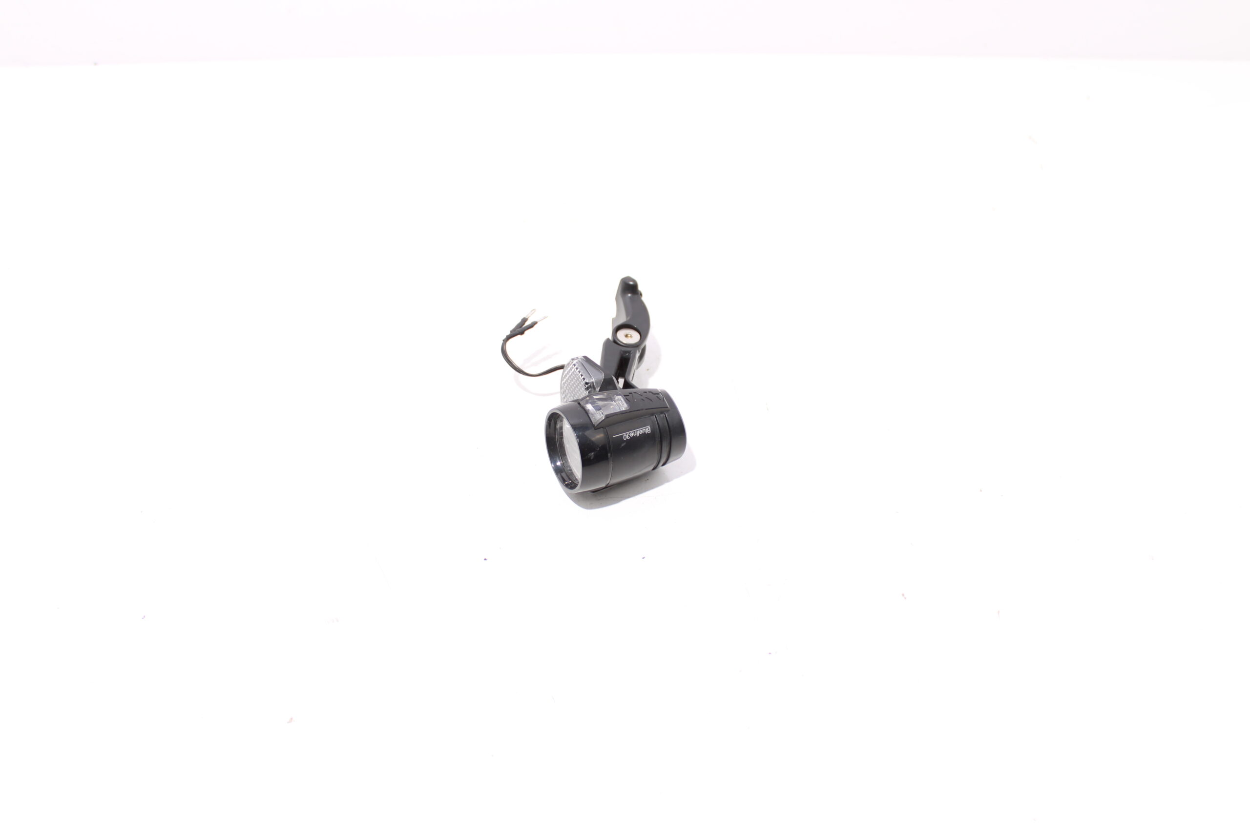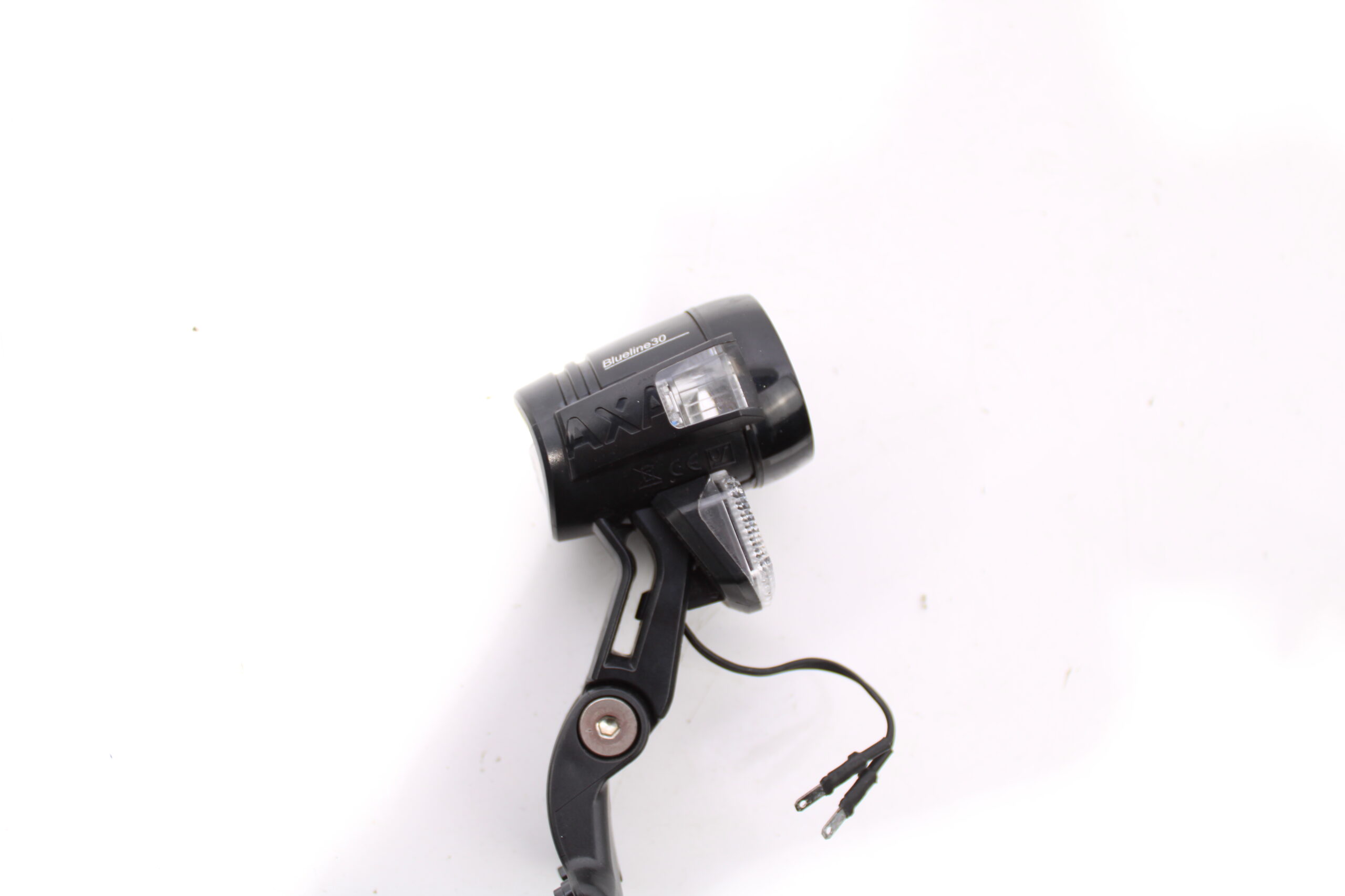 Artikel: Koplamp Axa Bleuline 30 met aansluiting op de accu. Dit onderdeel is afkomstig van een E-city elektrische fiets.