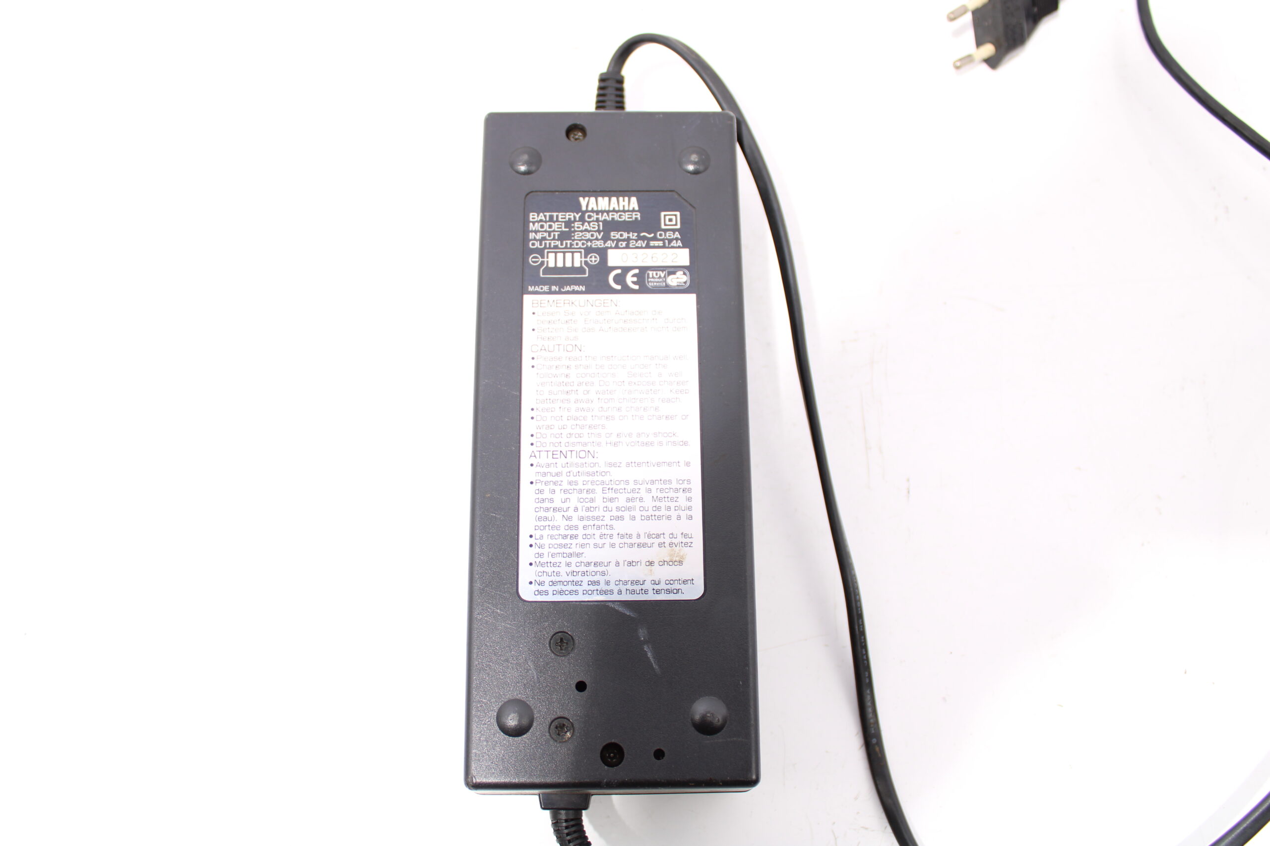 Artikel: Oplader 24v model: 5AS1. Dit onderdeel is afkomstig van een Yamaha XPC-26 elektrische fiets.
