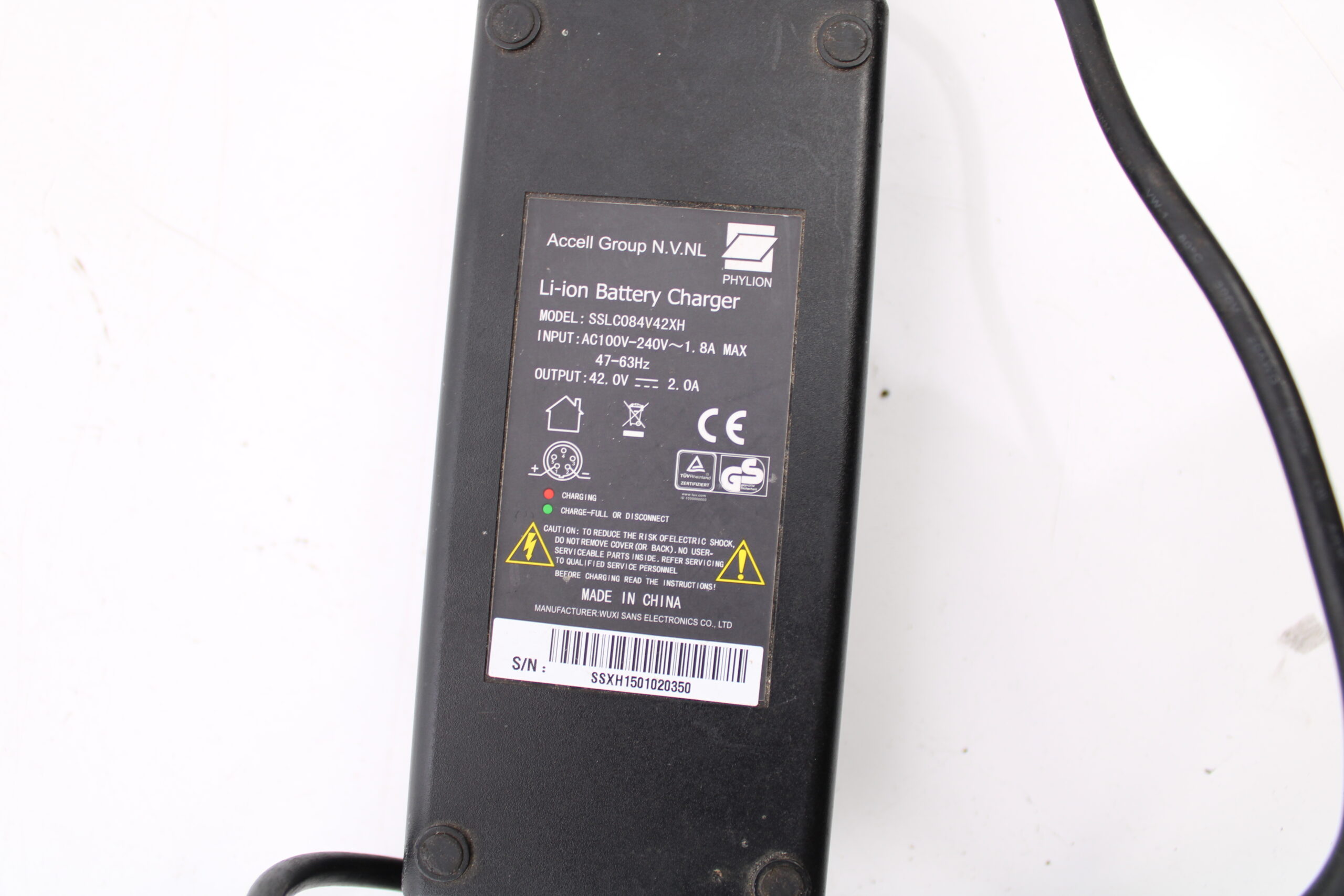 Artikel: Oplader van Accel 36 volt 4-pins (Model: SSLC084V42XH). Dit onderdeel is toepasbaar op meerdere type elektrische fietsen, kijk goed naar de aansluiting van de stekker.