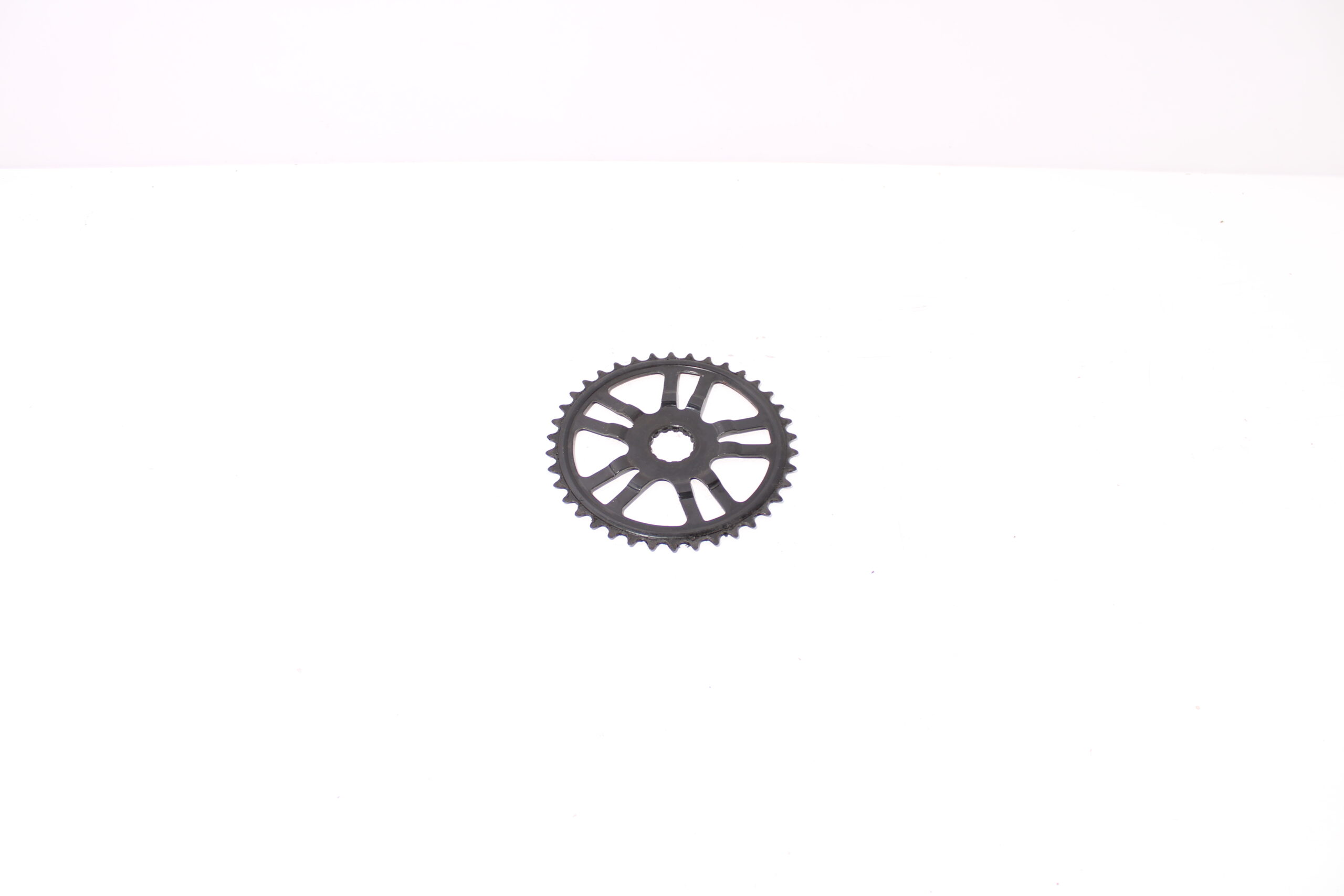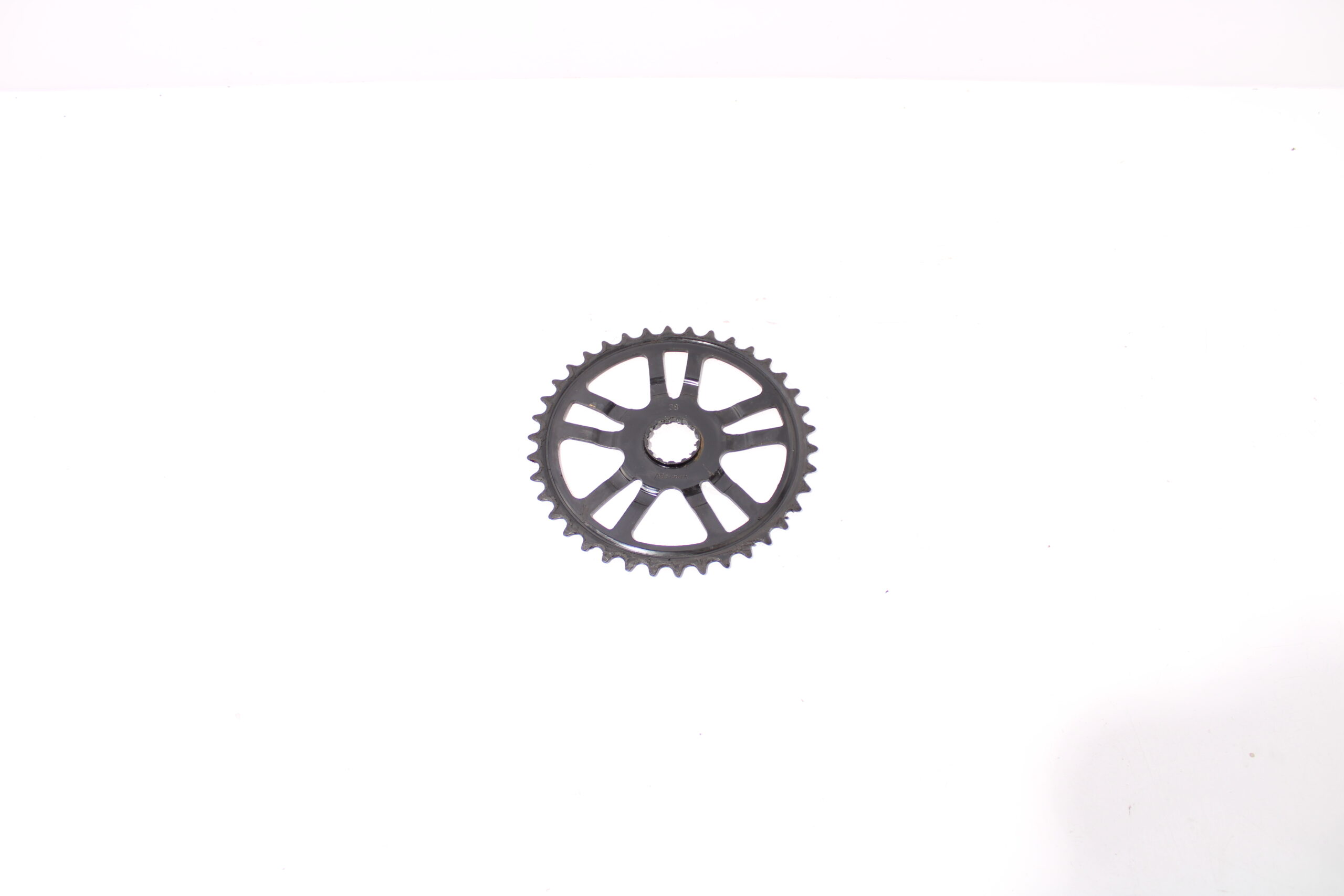 Artikel: Tandwiel van het merk Miranda (38T). Dit onderdeel is afkomstig van een Union E-Fast elektrische fiets. Het betreft een originele onderdeel dat verkeert in goede staat, met mogelijke gebruikssporen.