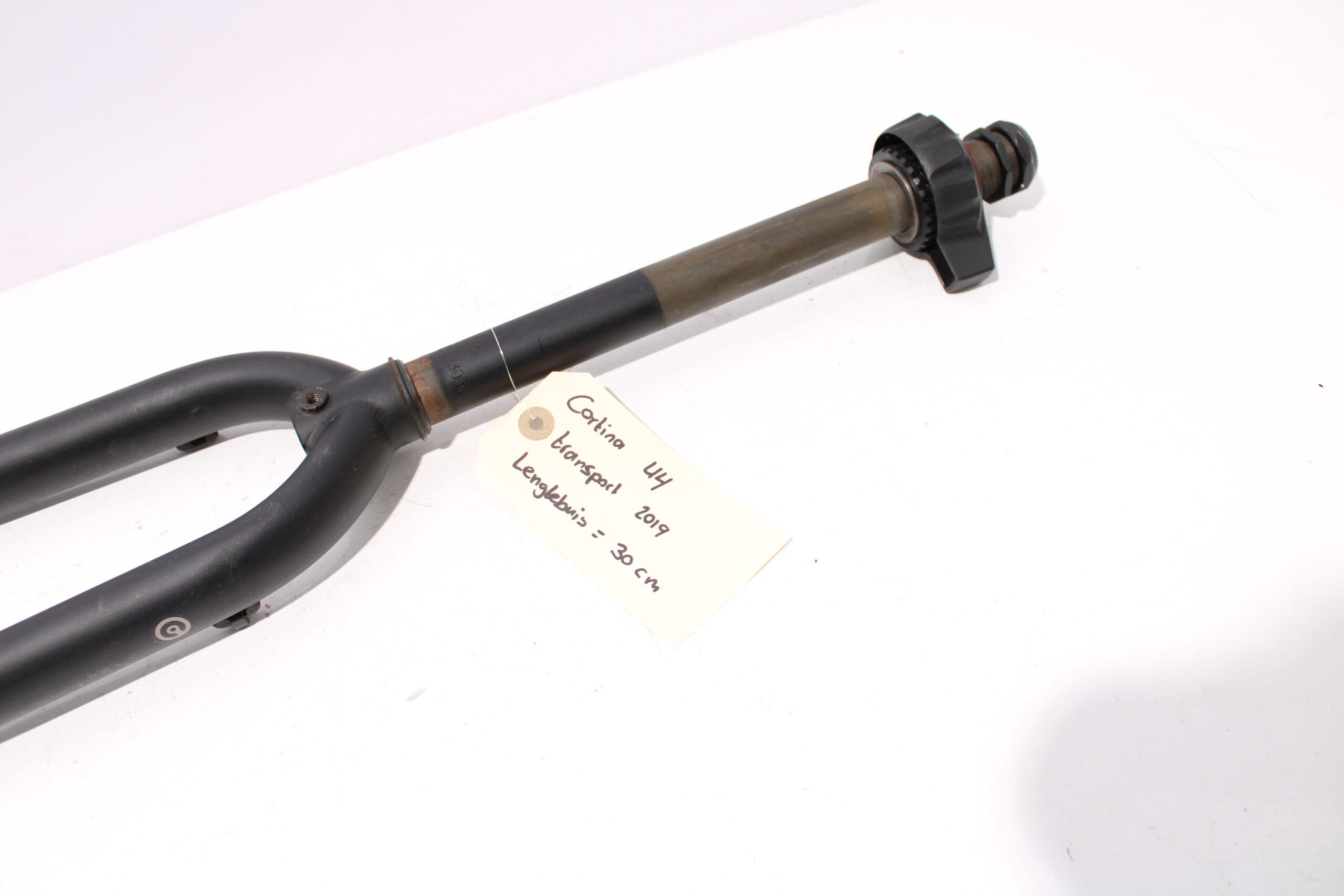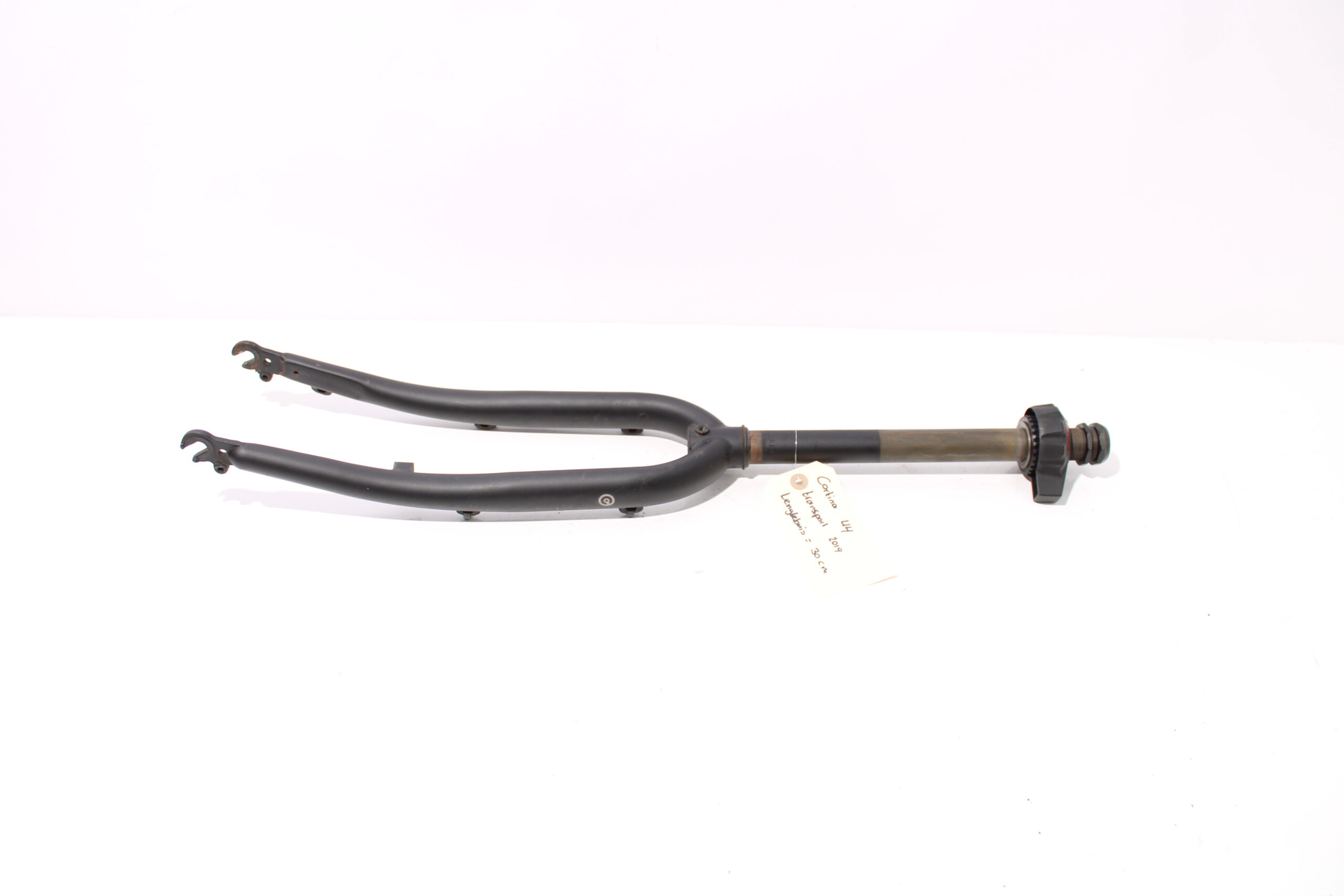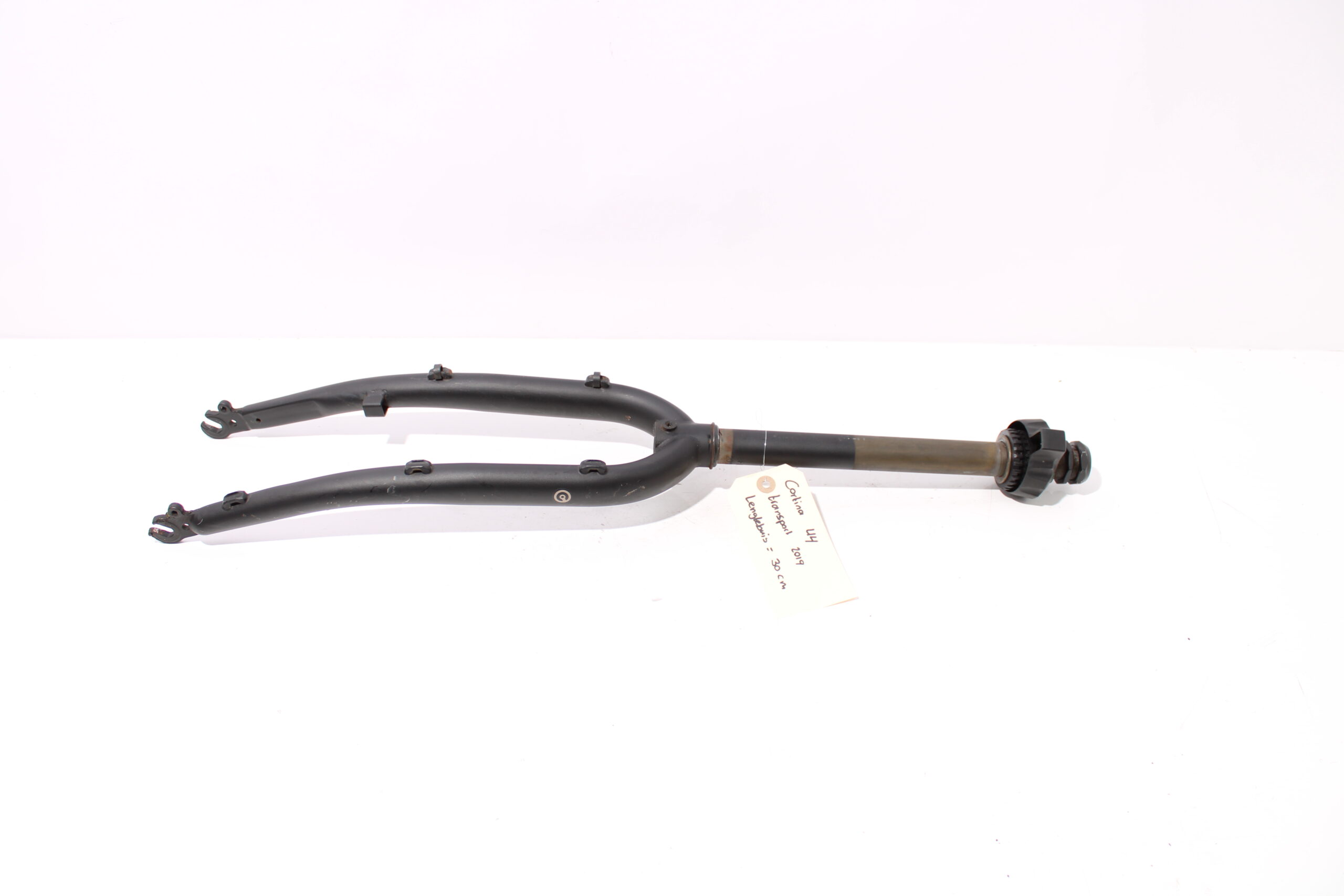 Artikel: Vaste voorvork 28 inch (lengtebuis: 30 cm) zwart. Dit onderdeel is afkomstig van een Cortina E-U4 Transport elektrische fiets. Het betreft een originele onderdeel dat verkeert in goede staat, met mogelijke gebruikssporen.