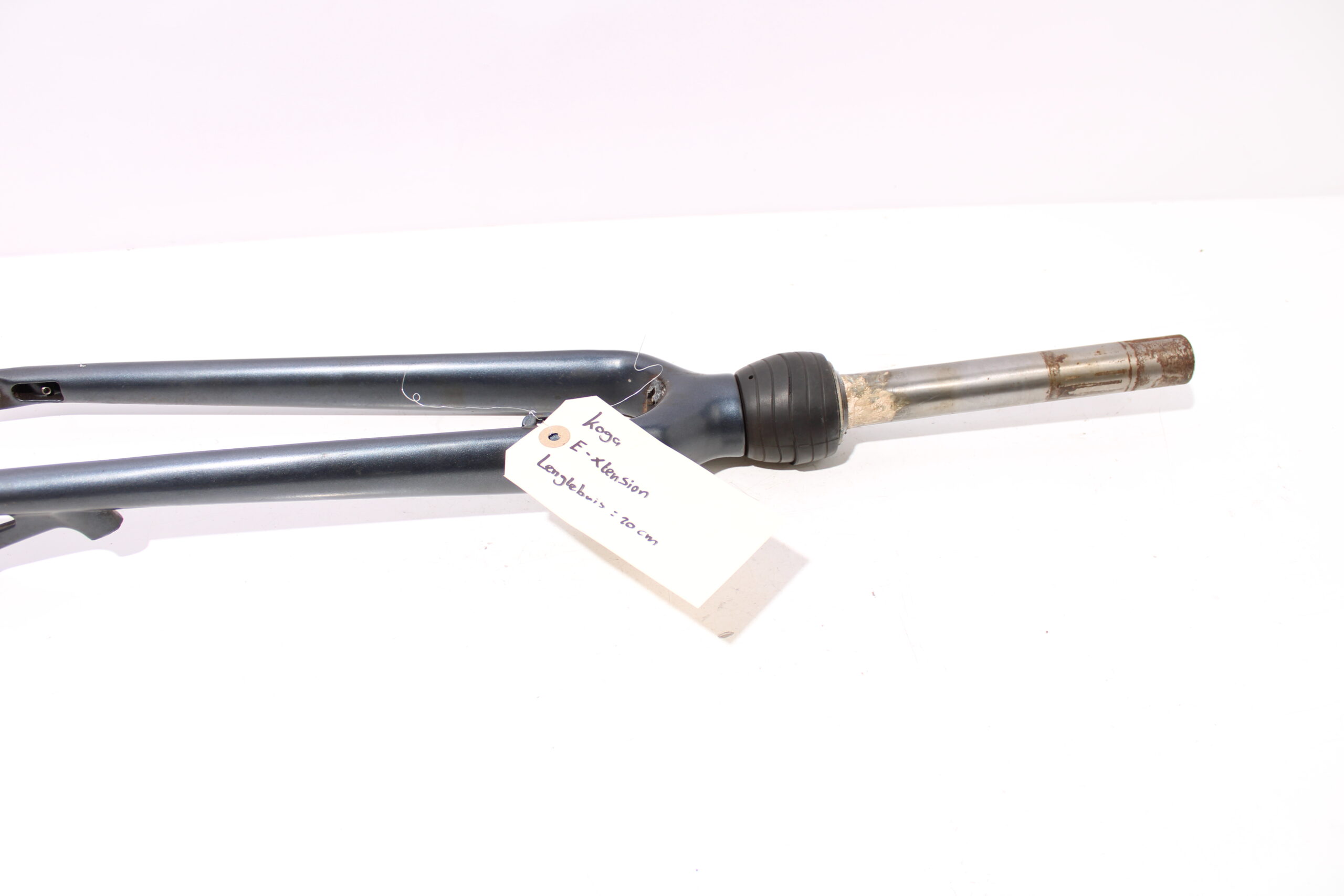 Artikel: Vaste voorvork 28 inch (lengtebuis: 20cm). Dit onderdeel is afkomstig van een Koga E-Xtension elektrische fiets. Het betreft een originele onderdeel dat verkeert in goede staat, met mogelijke gebruikssporen. Bevestiging van de koplamp is afgebroken, dit zit er nu nog op en moet dus nog worden verwijderd.