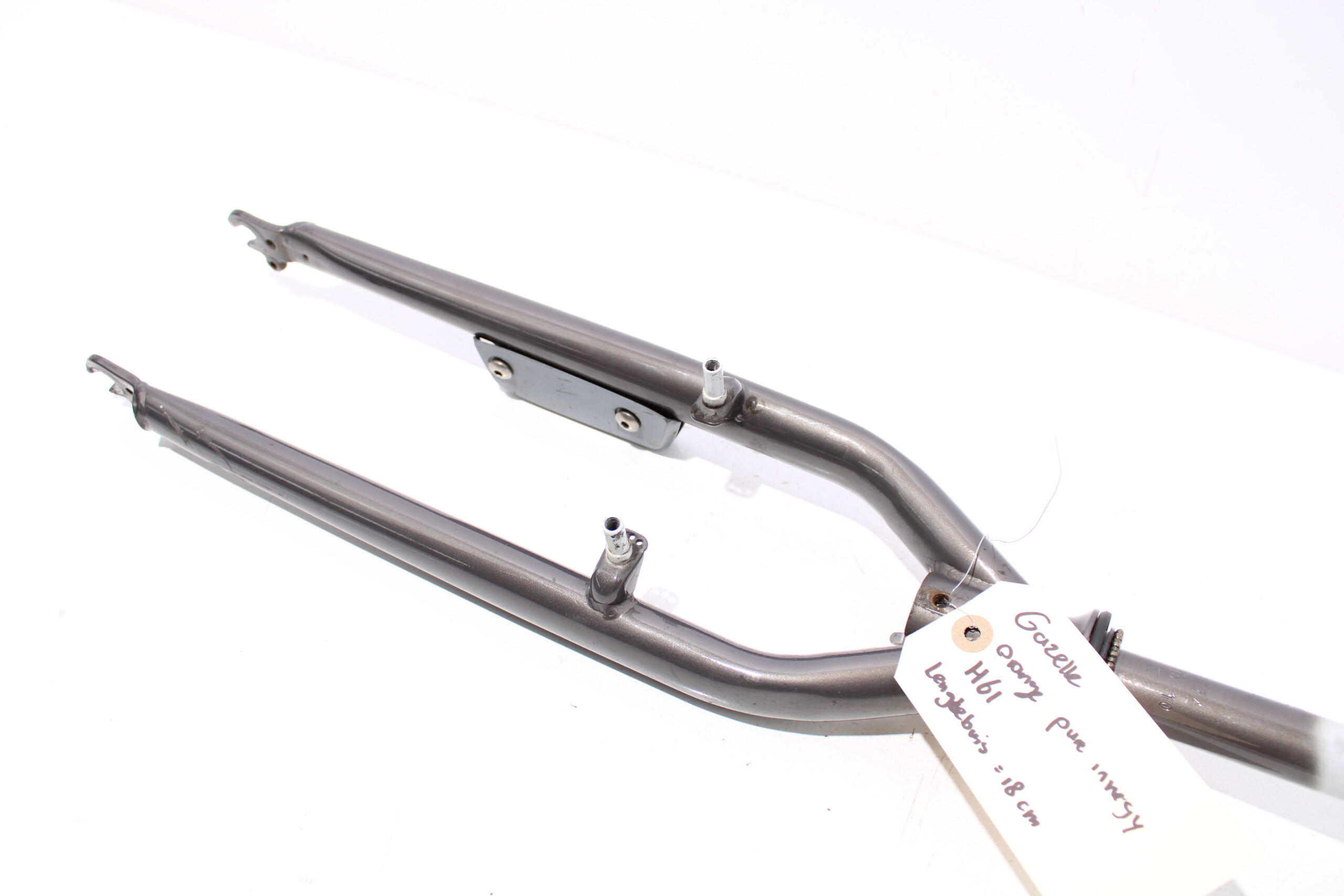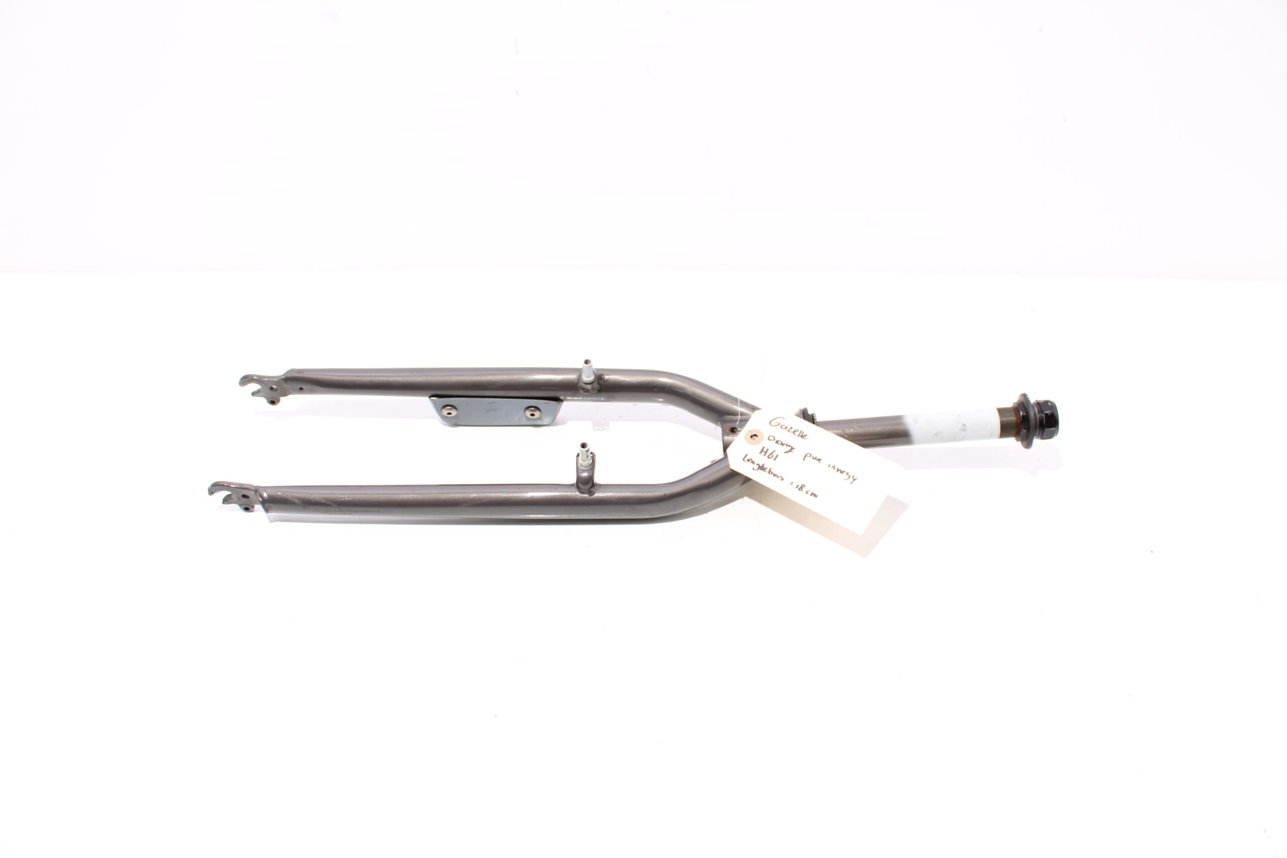 Artikel: Verende voorvork 28 inch, afkomstig van een frame met maat H61 (lengtebuis = 18cm). Dit onderdeel is afkomstig van een Gazelle Orange Pure Innergy elektrische fiets.