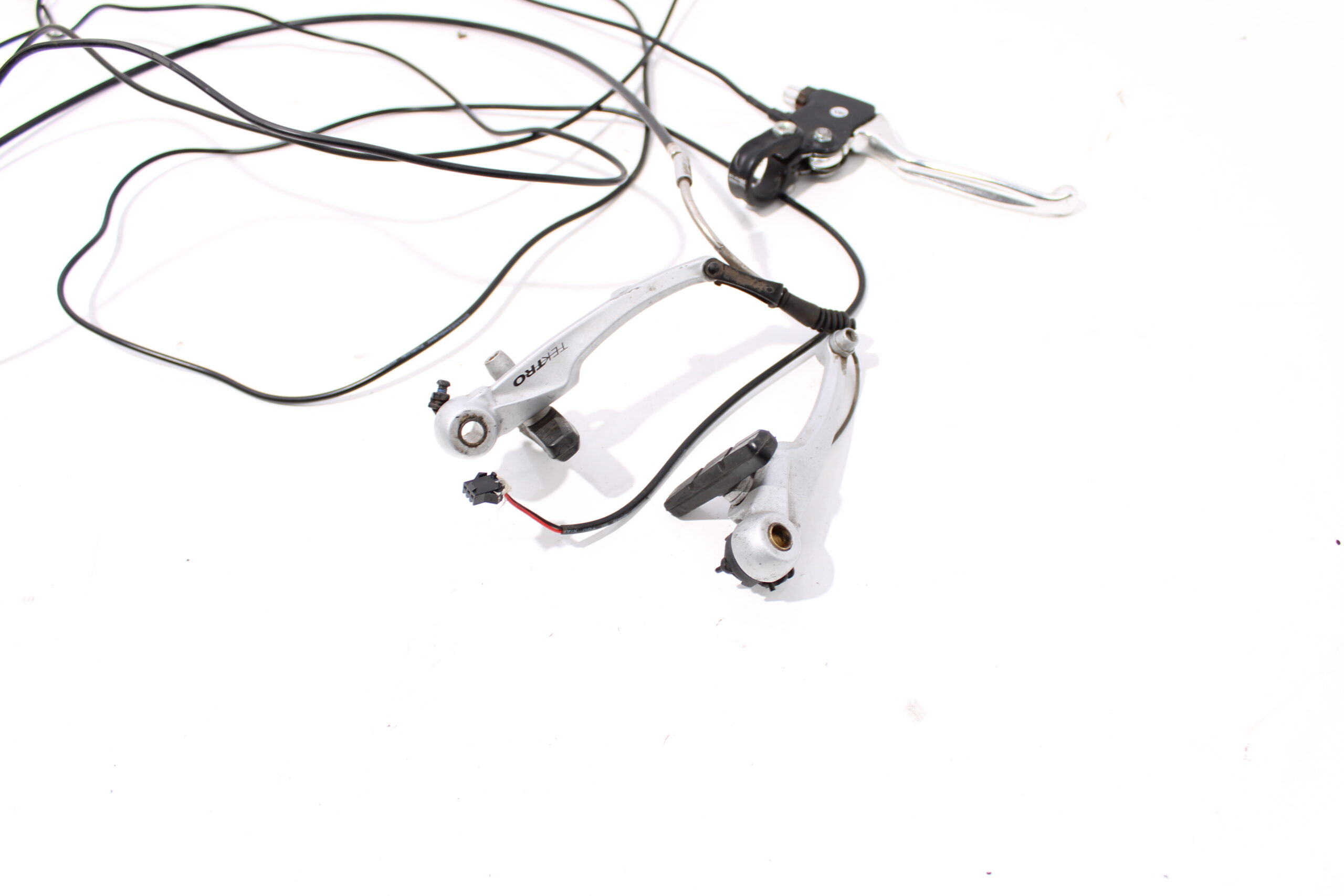 Artikel: Voor en achterrem v-brake inclusief remsensoren, de remmen zijn van Tektro. Dit onderdeel is afkomstig van een Vogue Basic elektrische fiets.