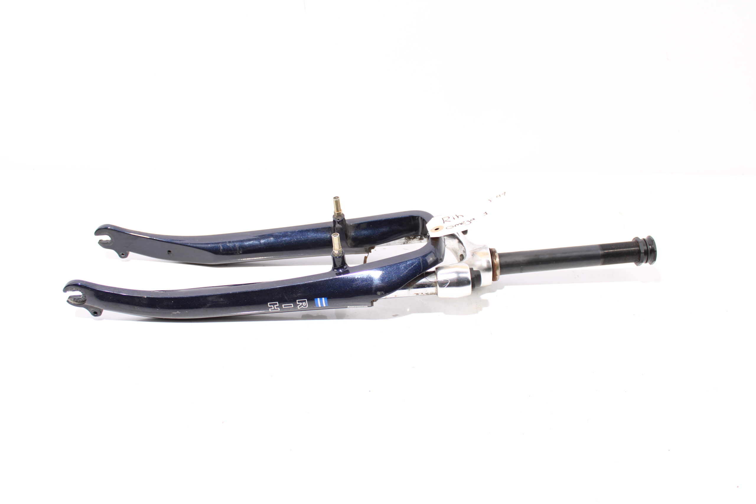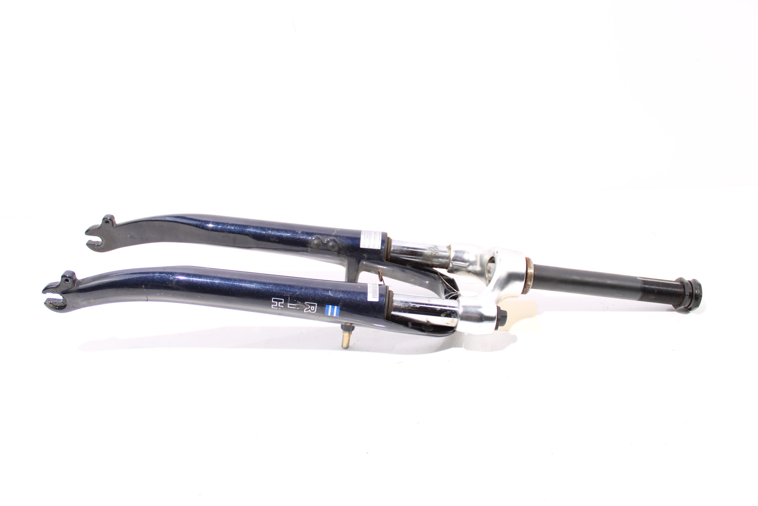 Artikel: Voorvork 28 inch blauw, komt van een fiets met framemaat 49. Dit onderdeel is afkomstig van een Rih Omega 1 elektrische fiets.