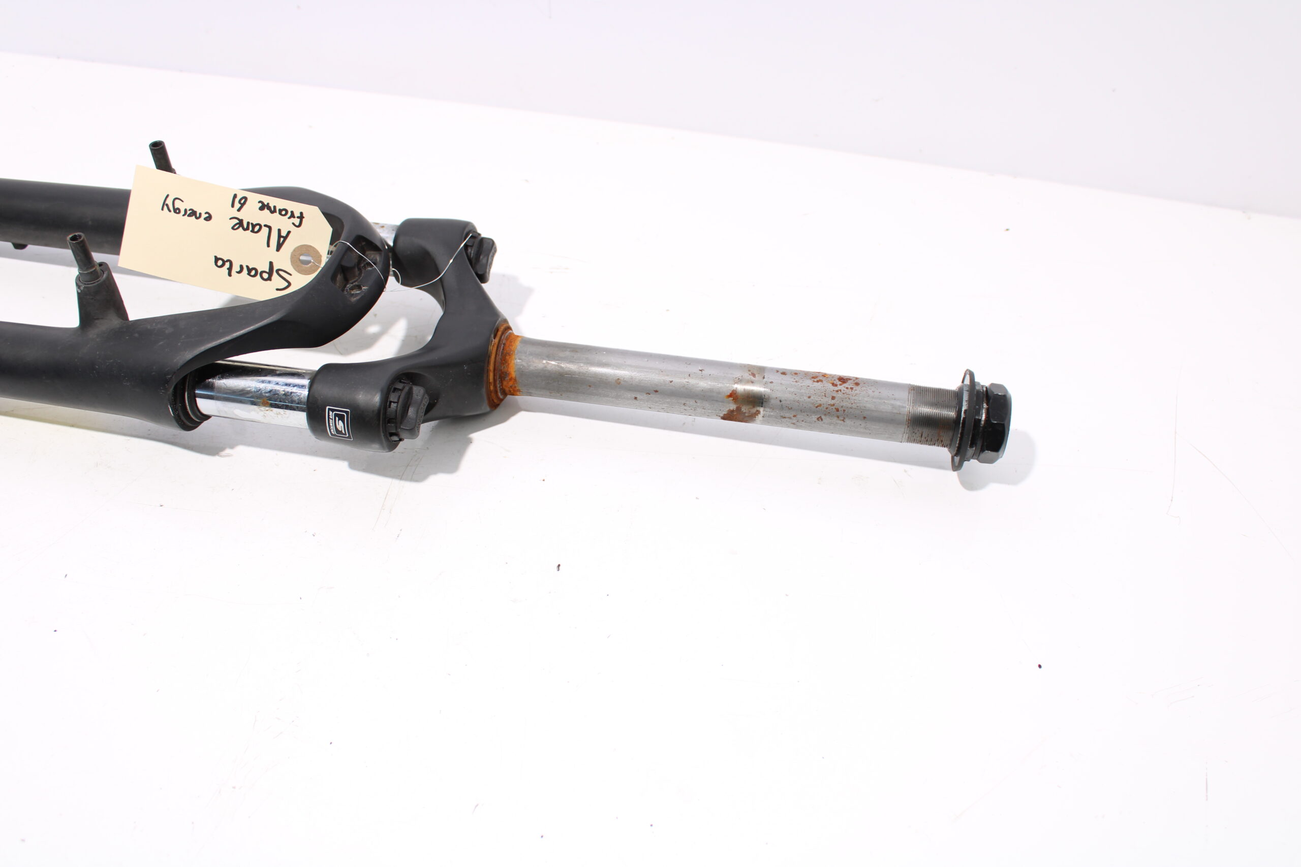 Artikel: Voorvork 28 inch zwart, afkomstig van een frame met maat 61. Dit onderdeel is afkomstig van een Sparta A-Lane Energy elektrische fiets.