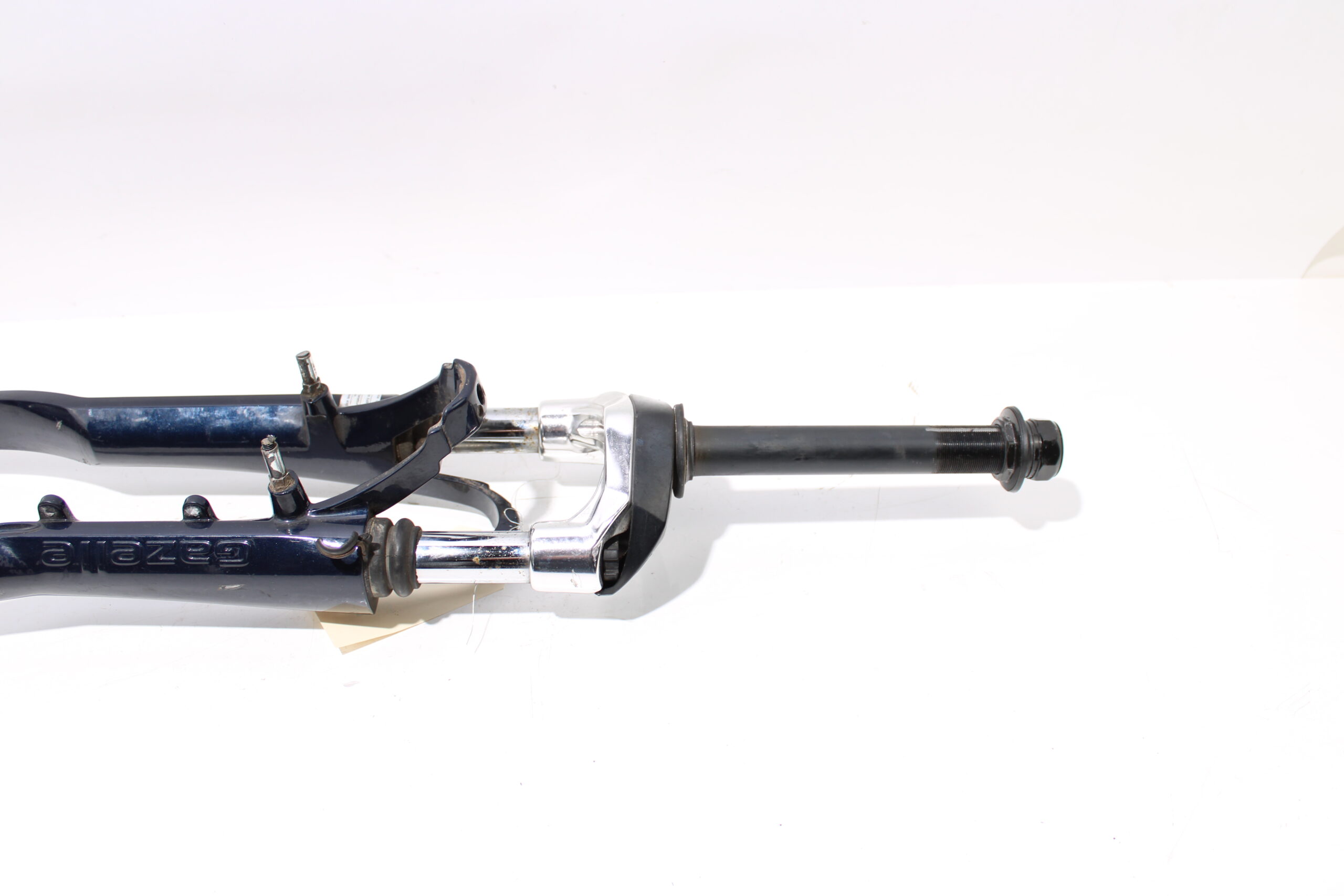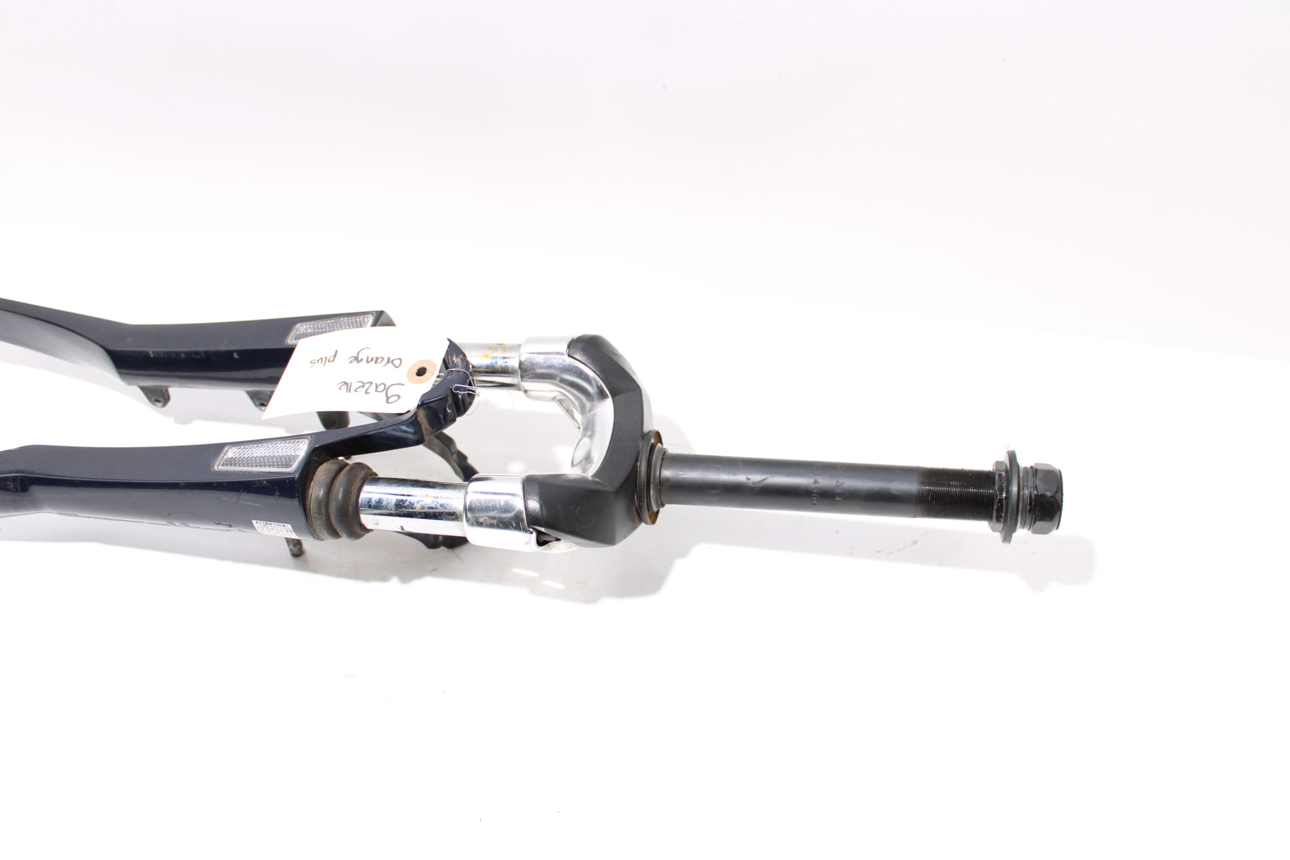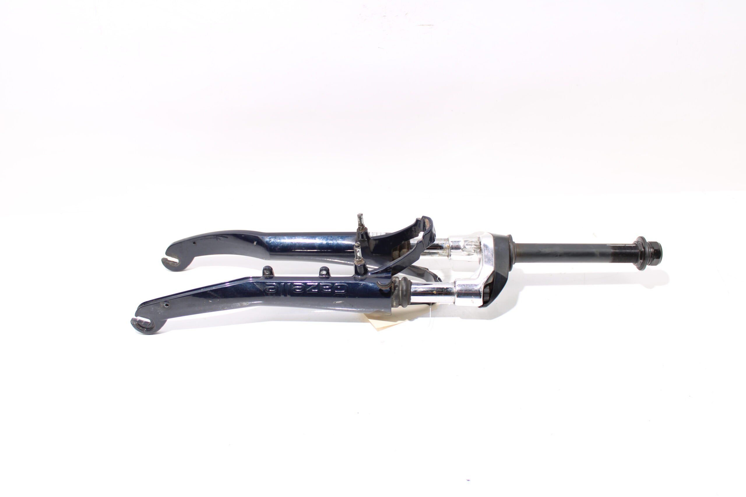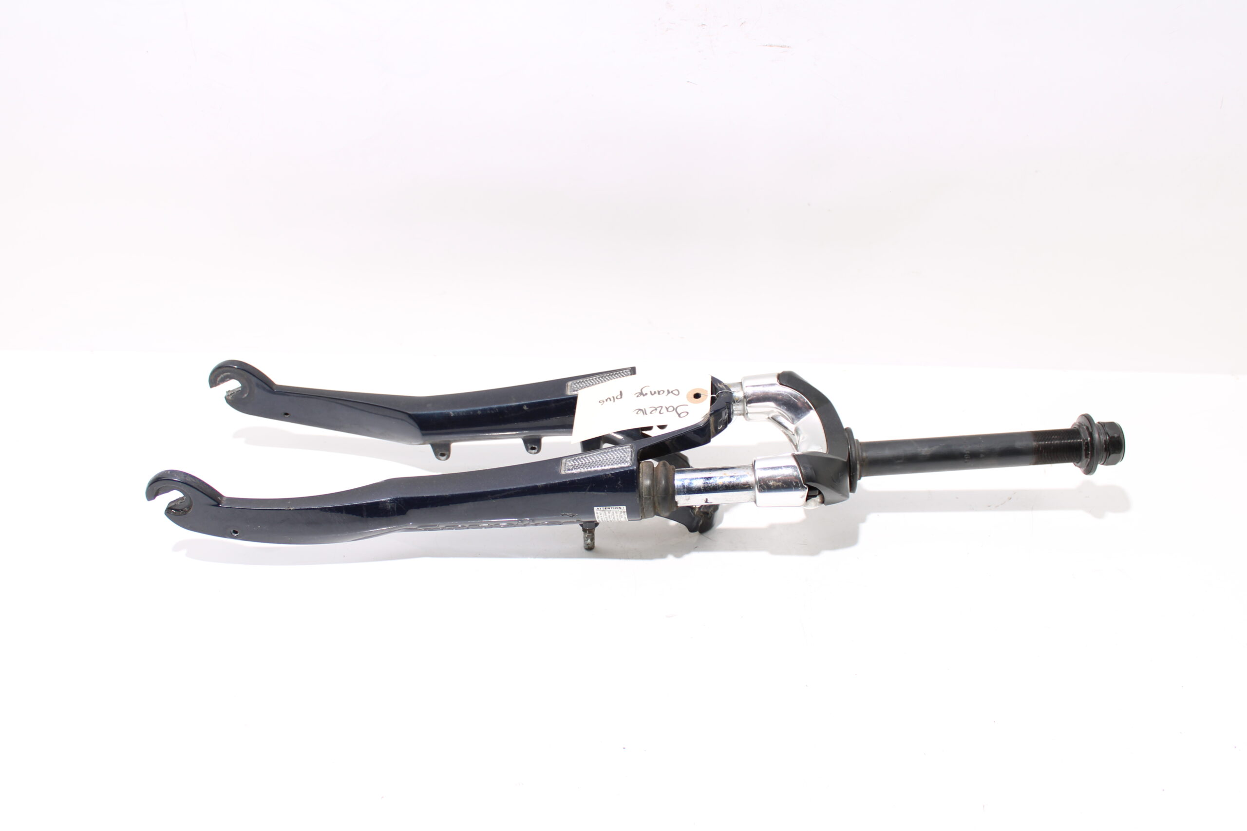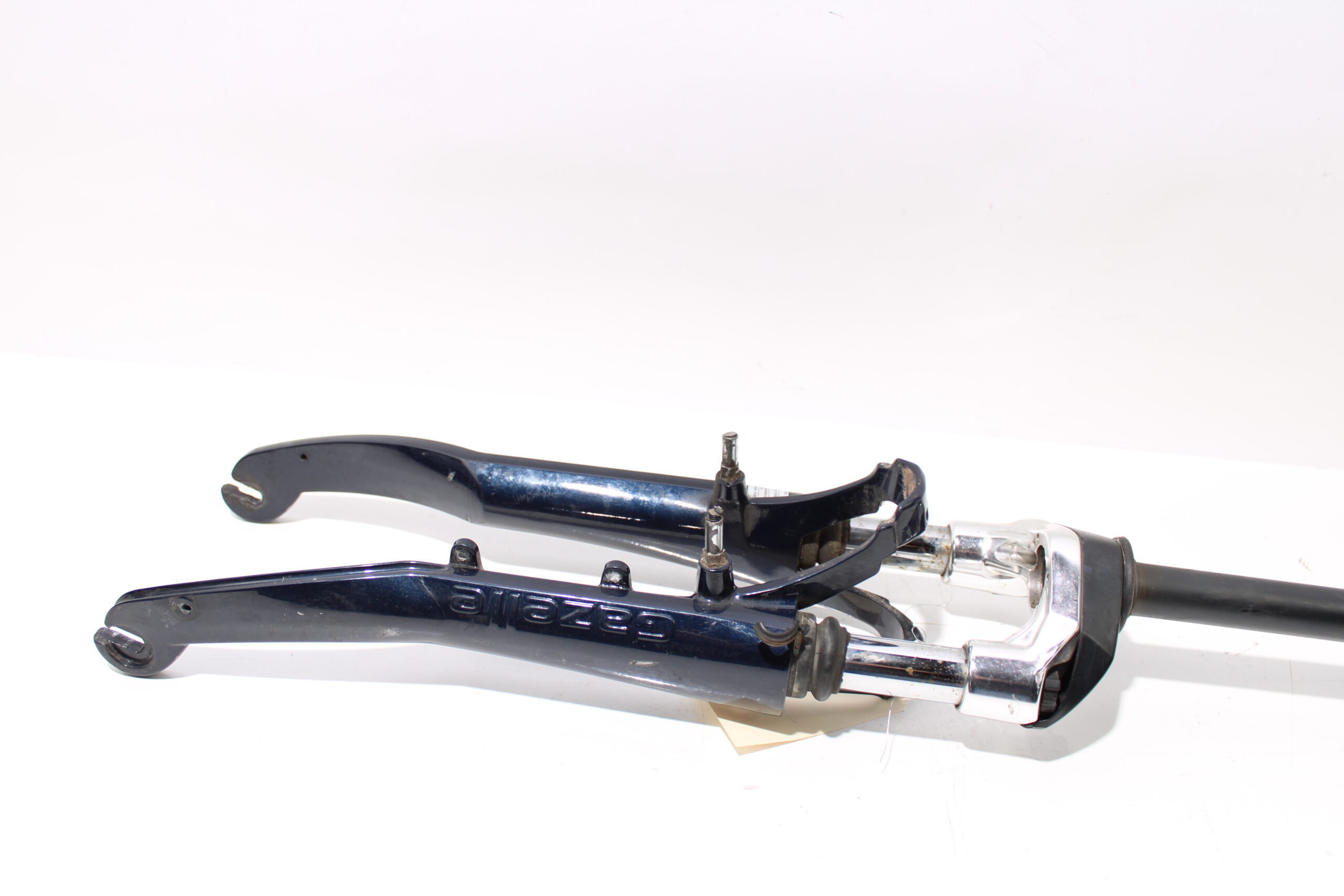 Artikel: voorvork donker blauw 28 inch. Dit onderdeel is afkomstig van een Gazelle Orange Plus elektrische fiets.