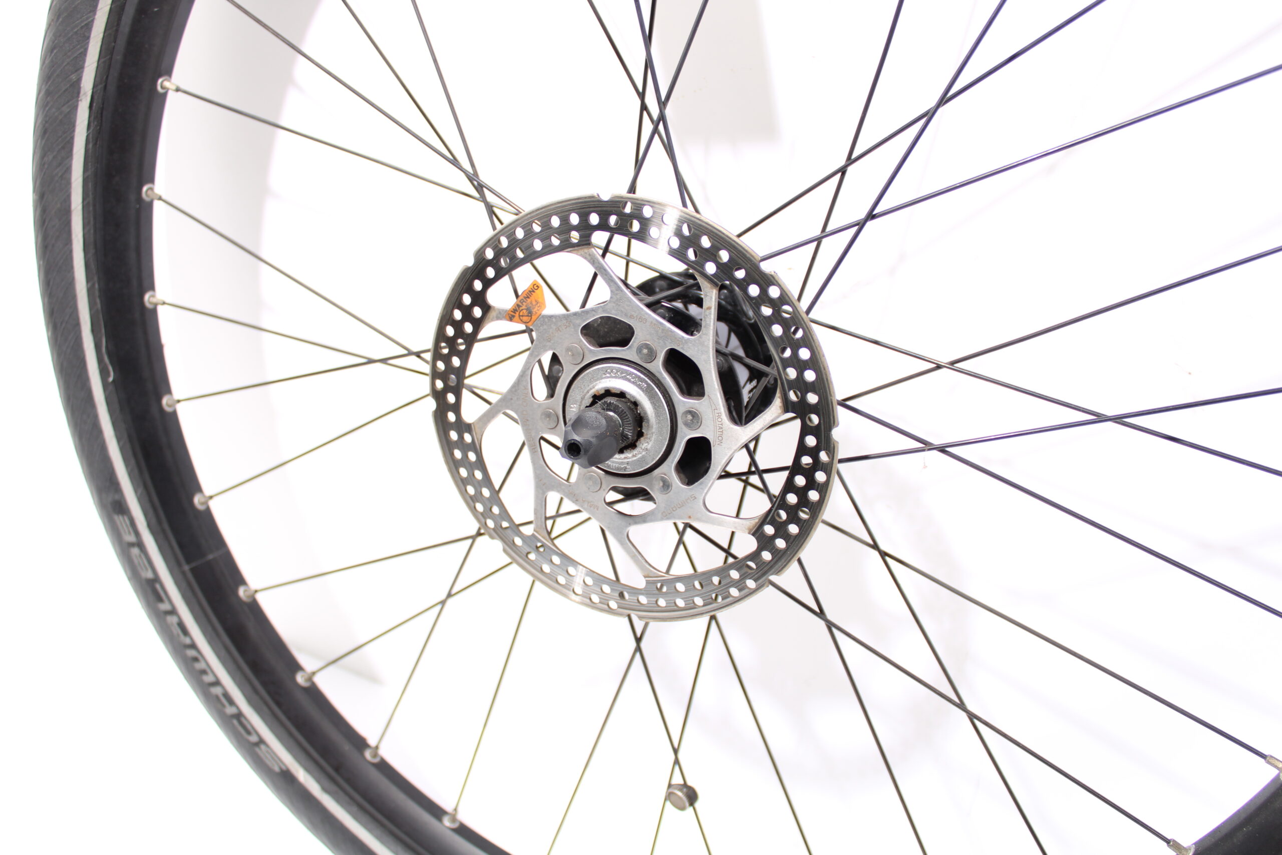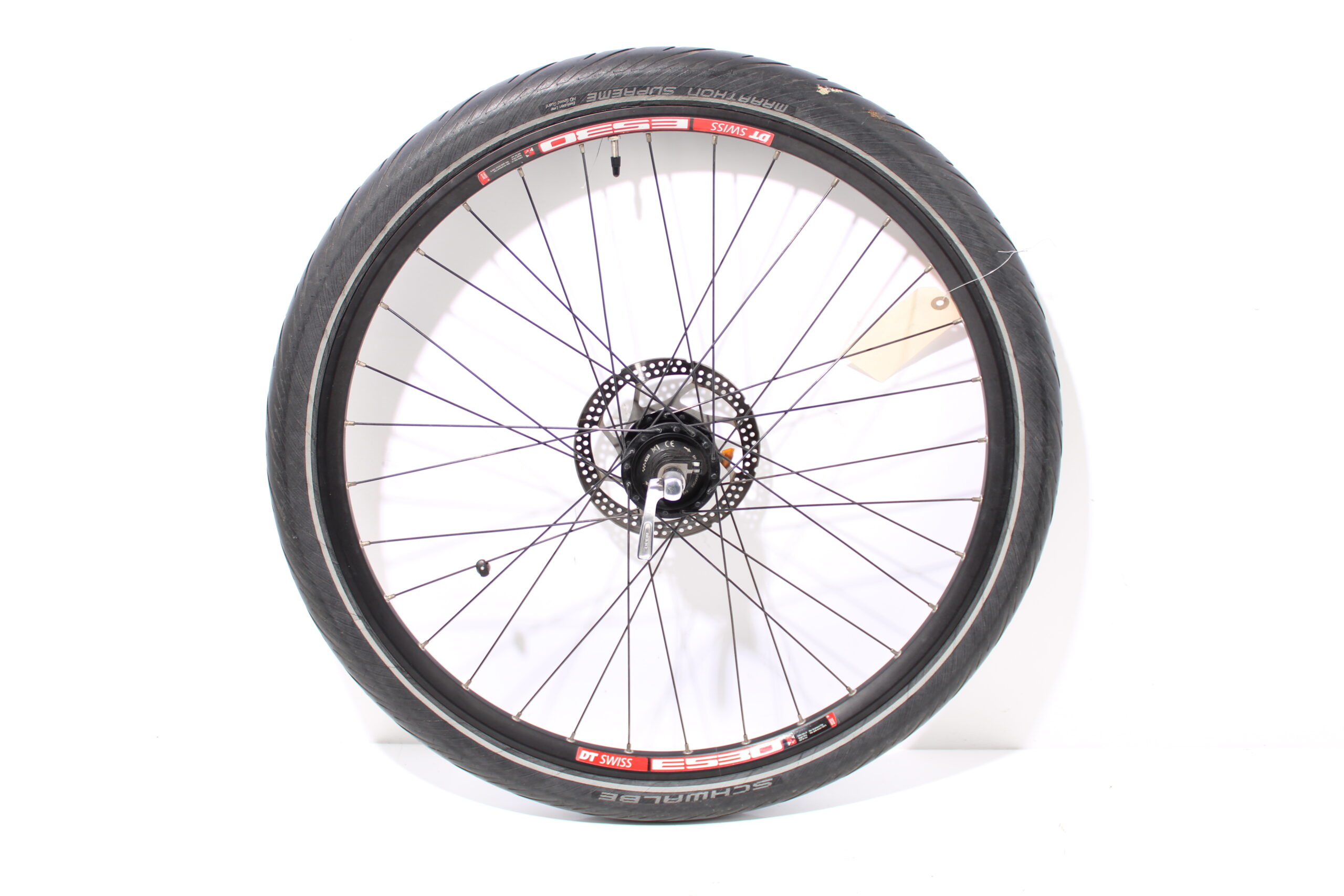 Artikel: Voorwiel 26 inch schijfrem en naafdynamo. Dit onderdeel is afkomstig van een Kalkhoff Easy Motion System elektrische fiets.