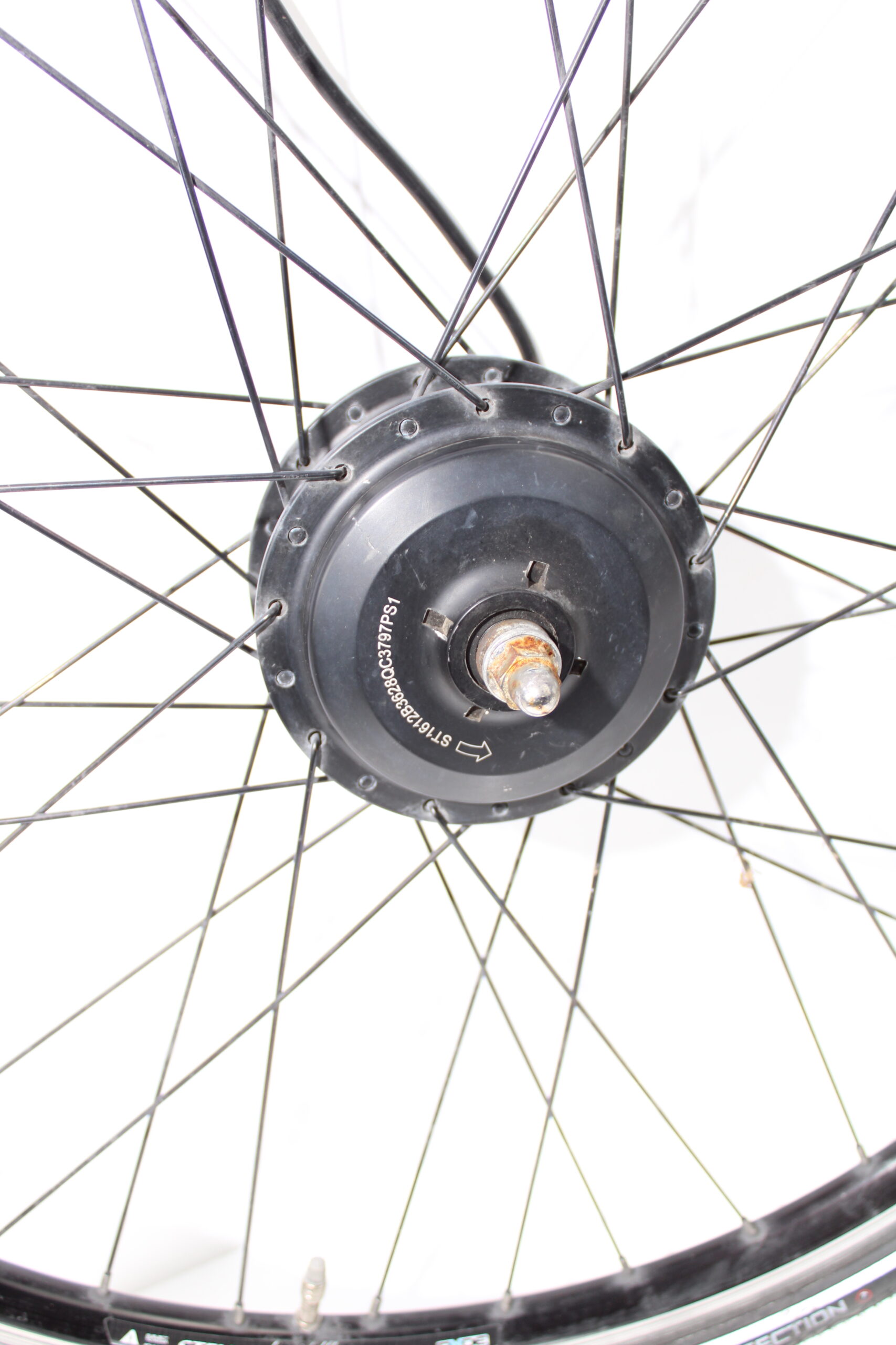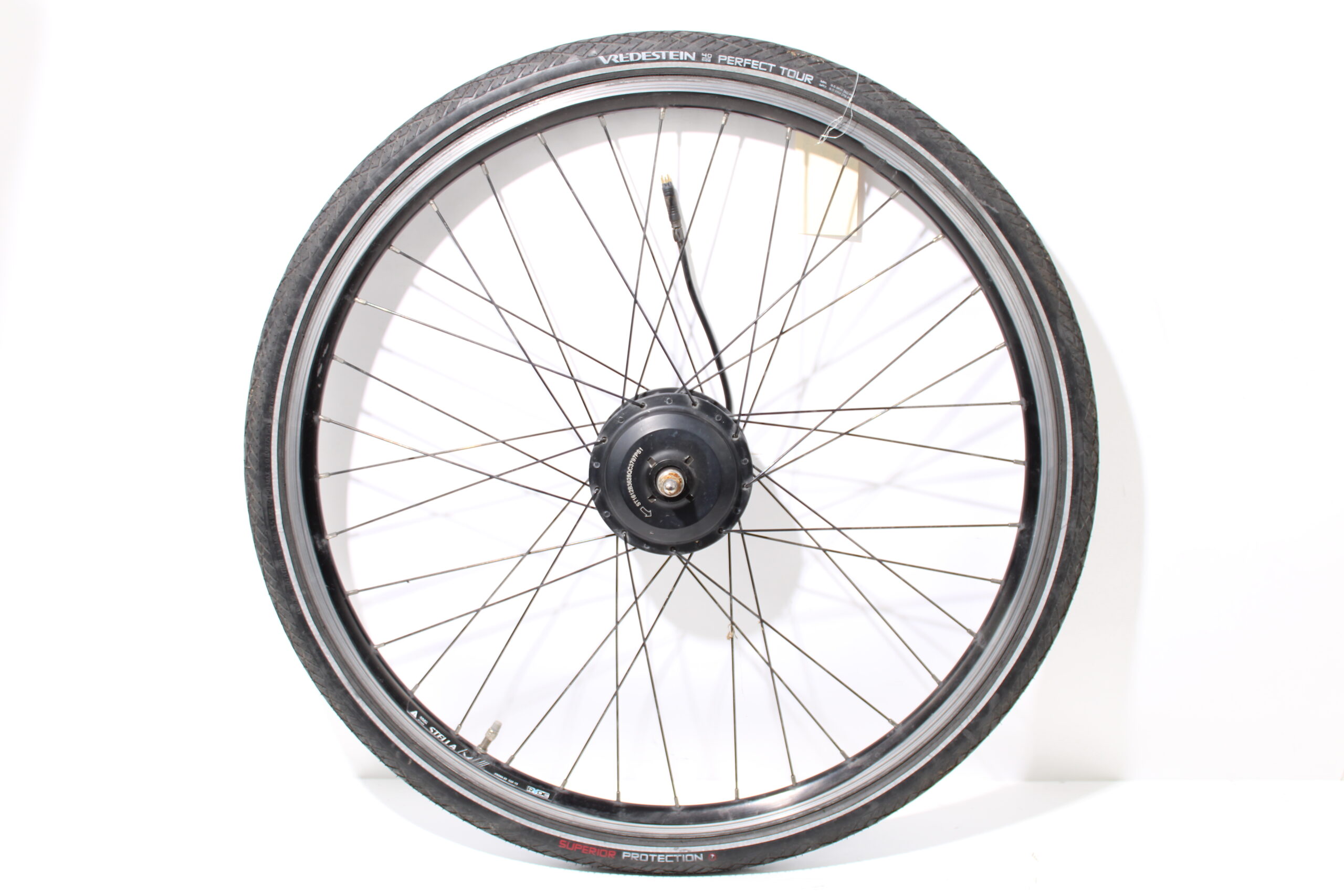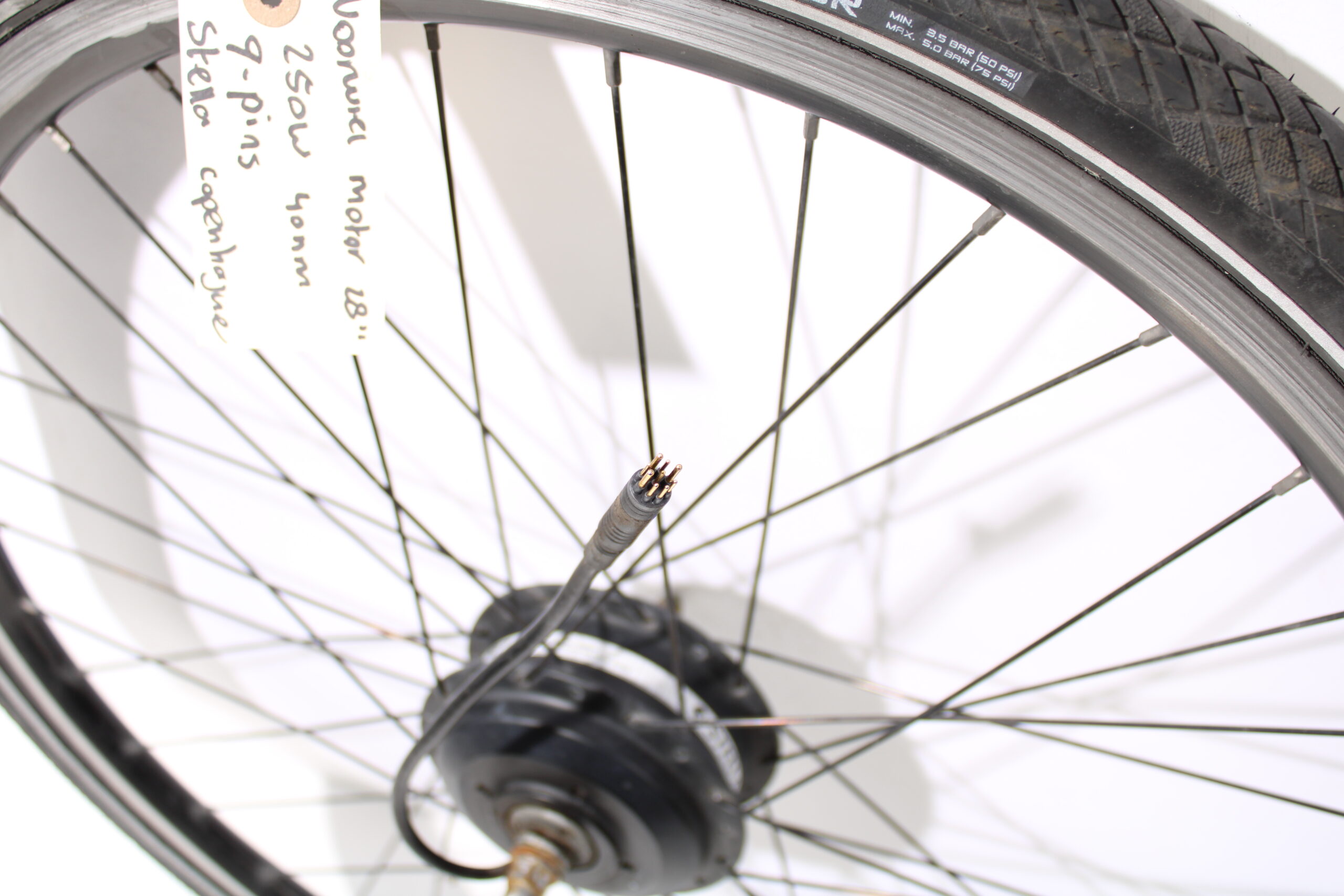 Artikel: Voorwiel motor 28 inch 250w 40nm 9-pins. Afkomstig van een Stella Copenhague e-bike.