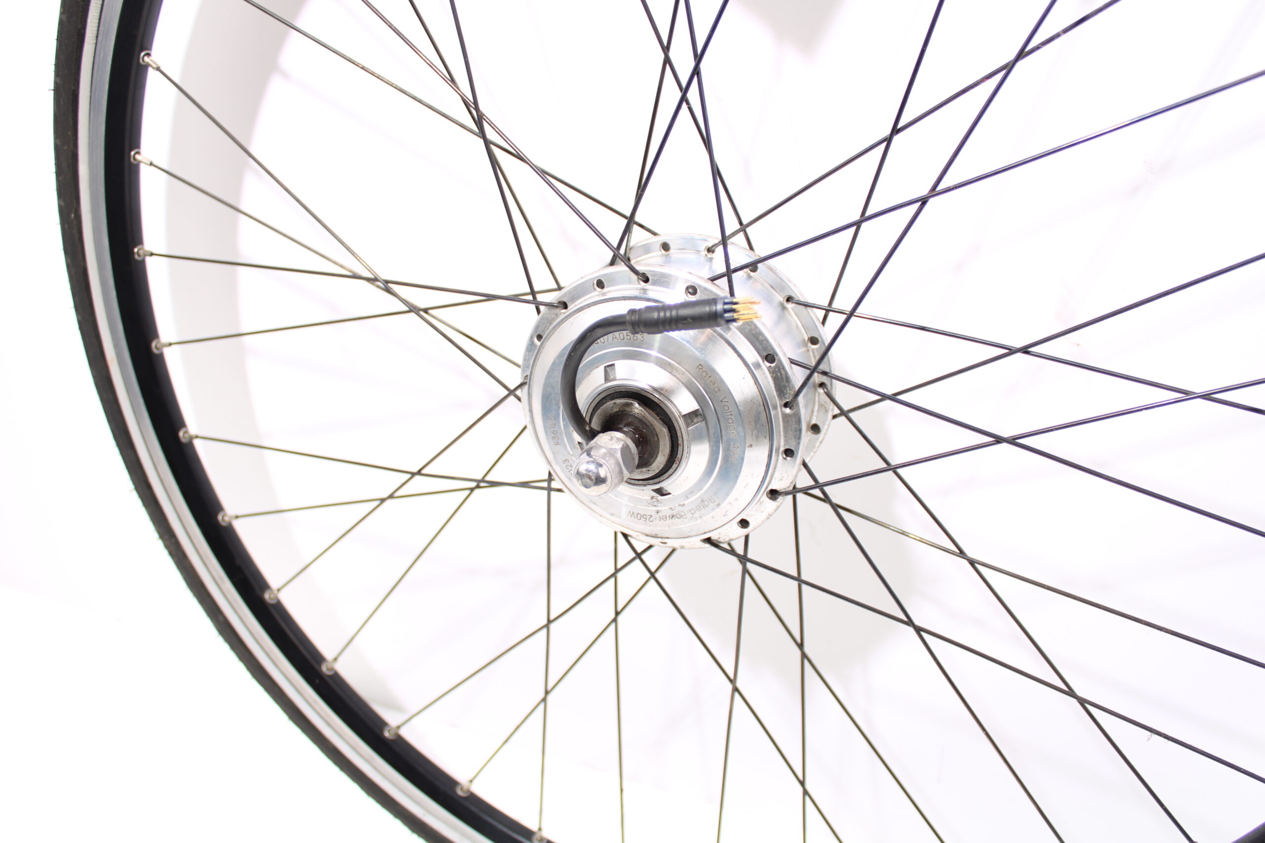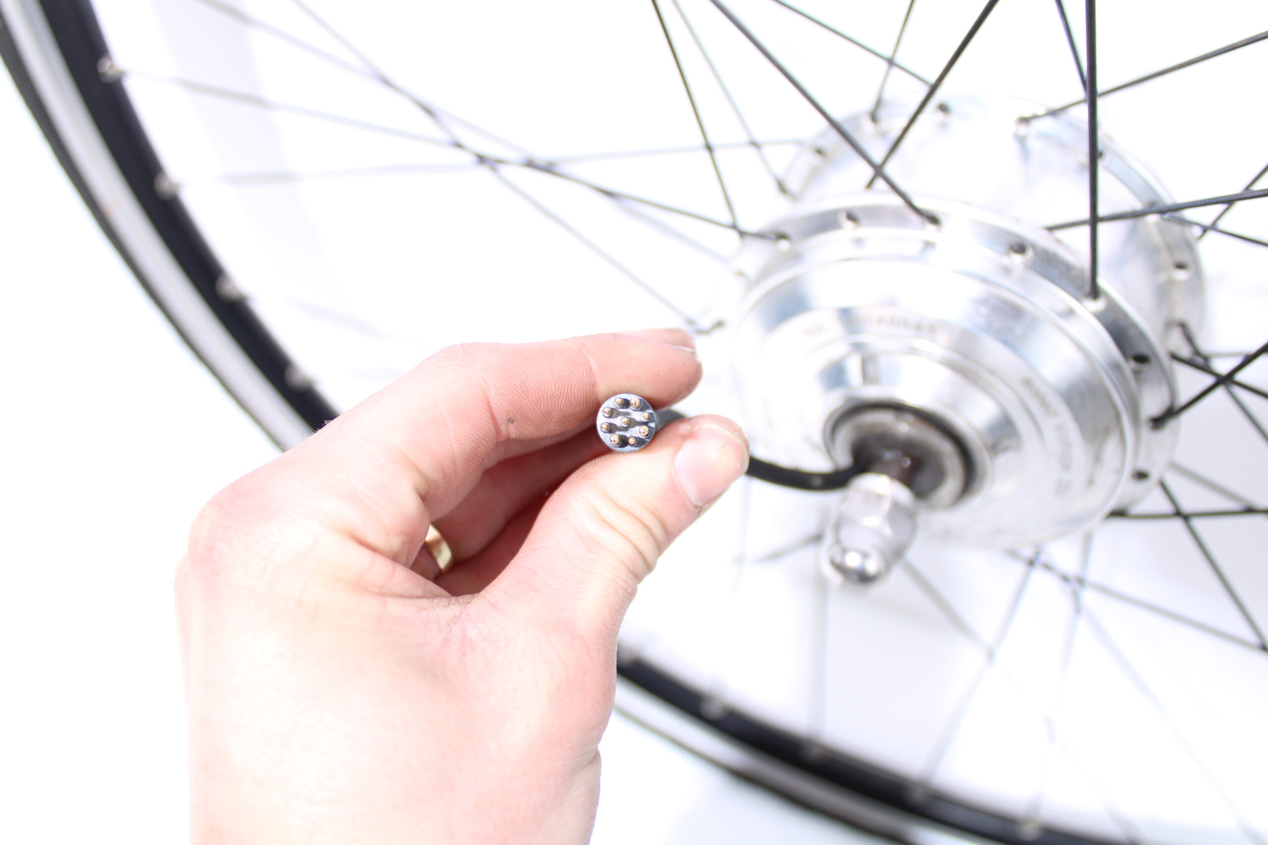 Artikel: Voorwiel motor 9-pins. Dit onderdeel is afkomstig van een Multicycle Expressive elektrische fiets.