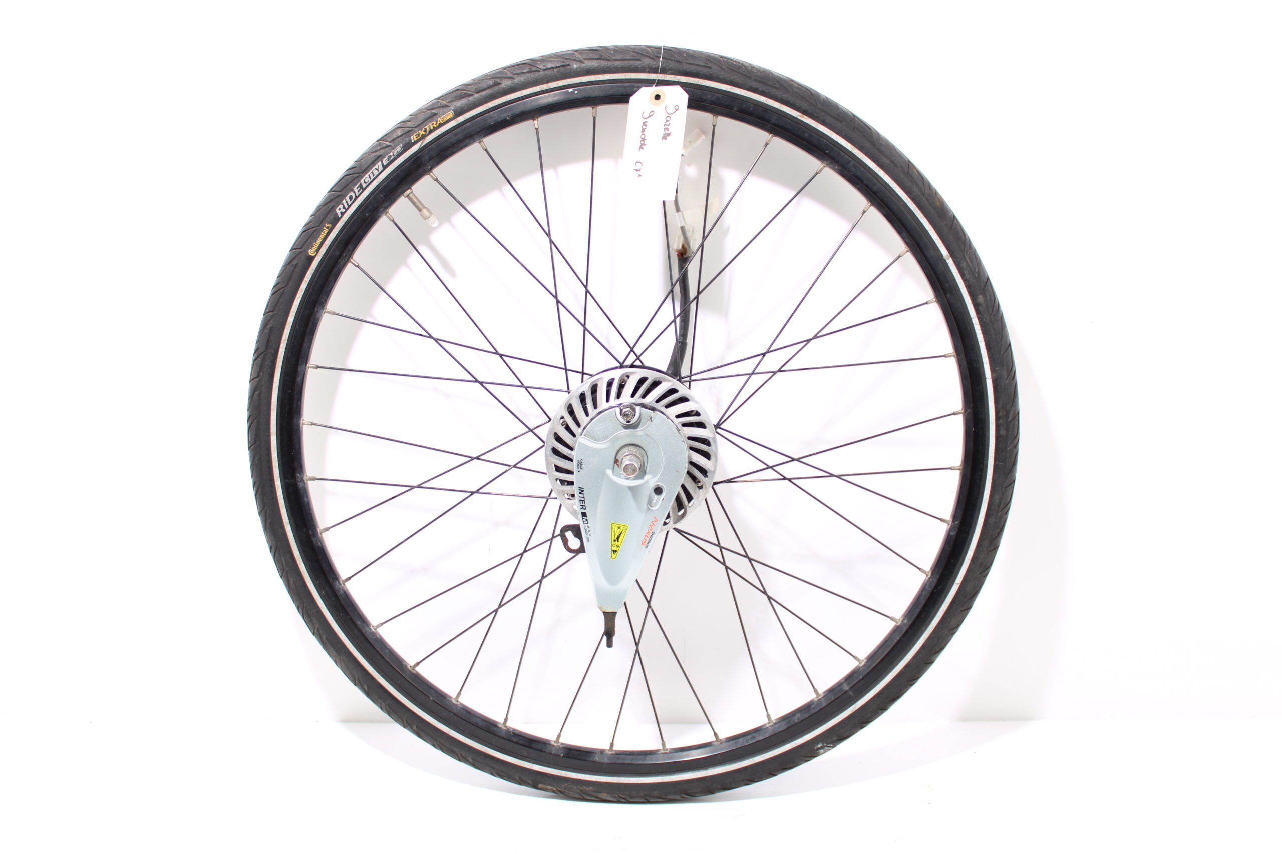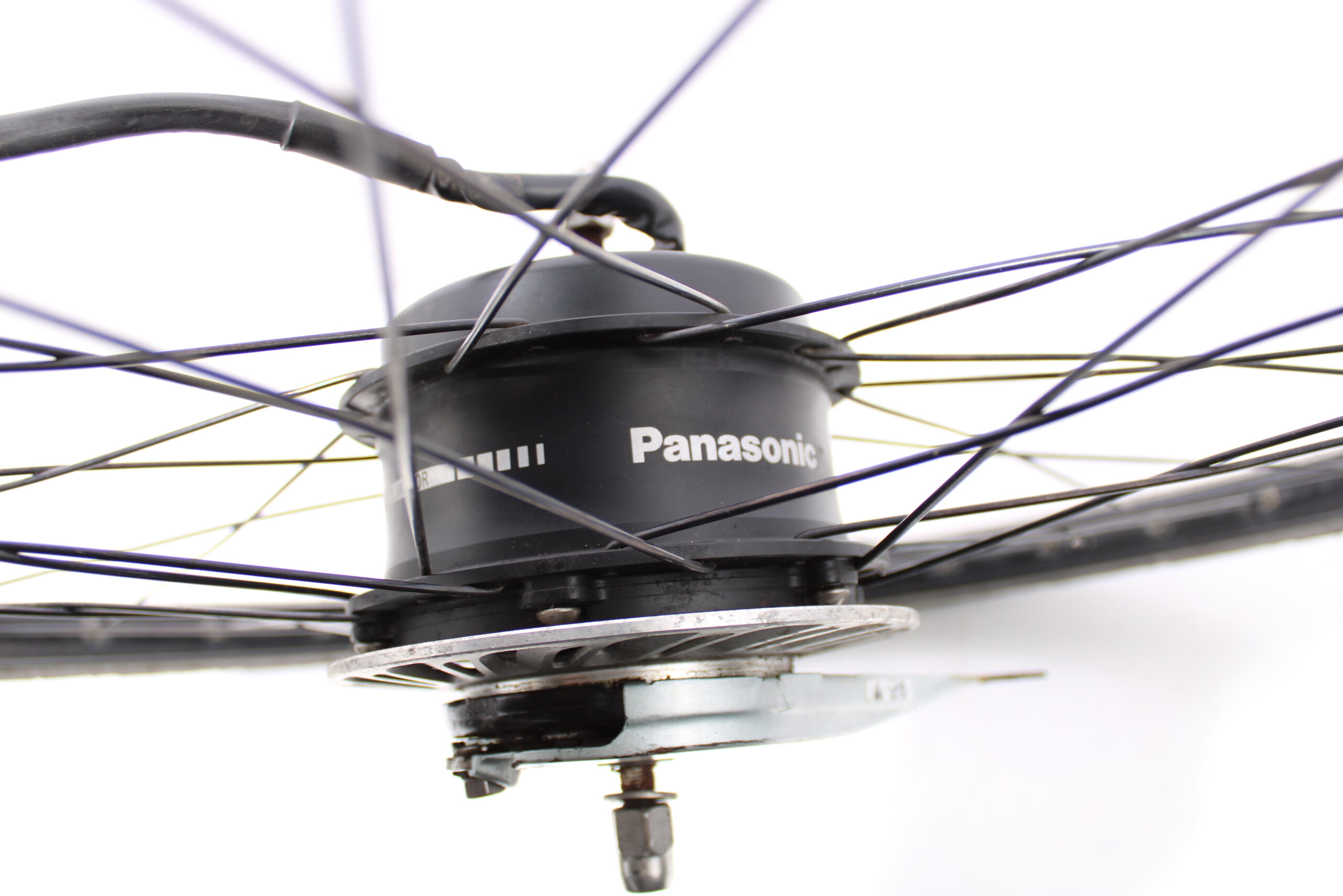 Artikel: Voorwiel motor 28 inch Panasonic. Dit onderdeel is afkomstig van een Gazelle Grenoble C7 elektrische fiets.