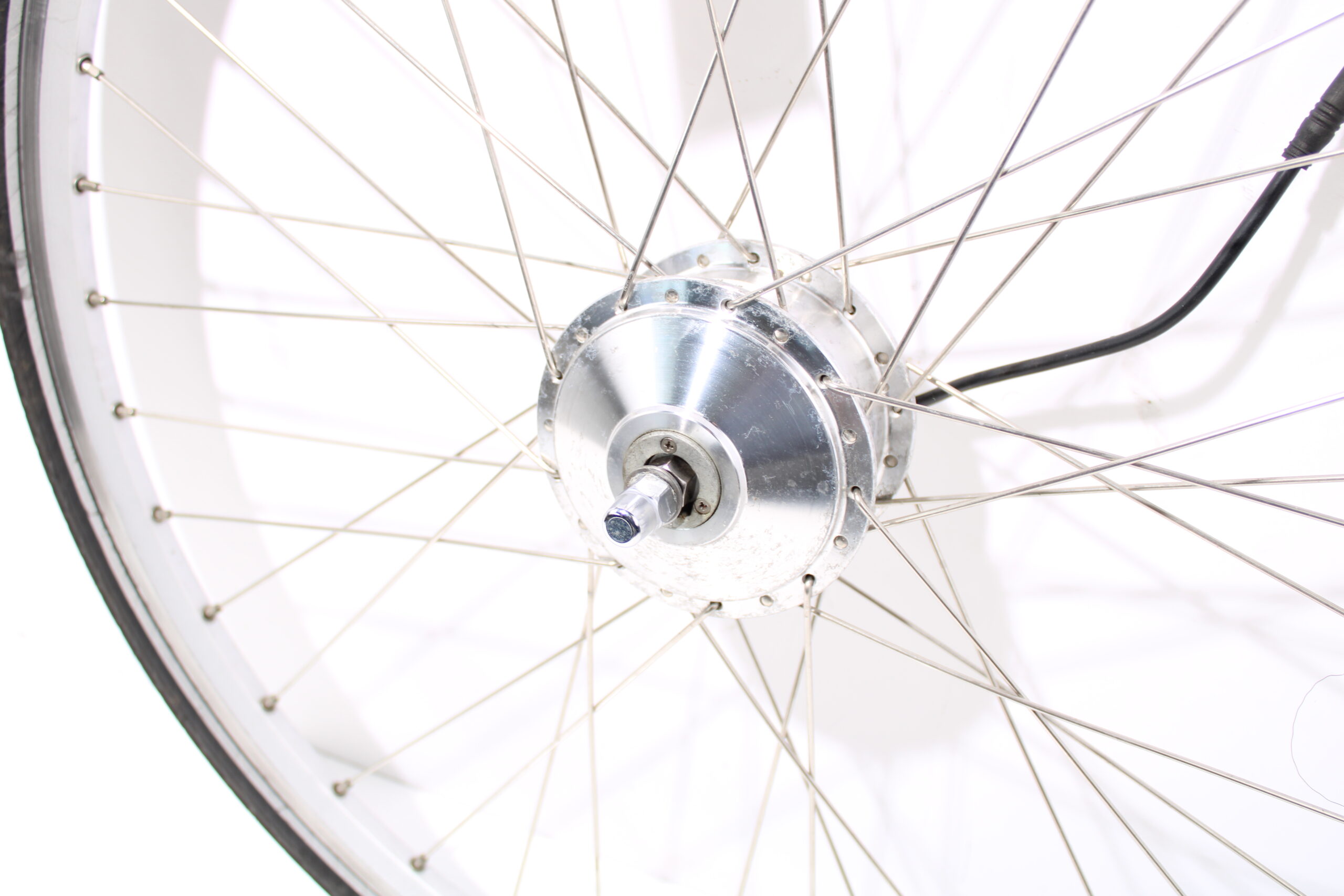 Artikel: Voorwiel motor 28 inch. Dit onderdeel is afkomstig van een Rih Omega 2 elektrische fiets.