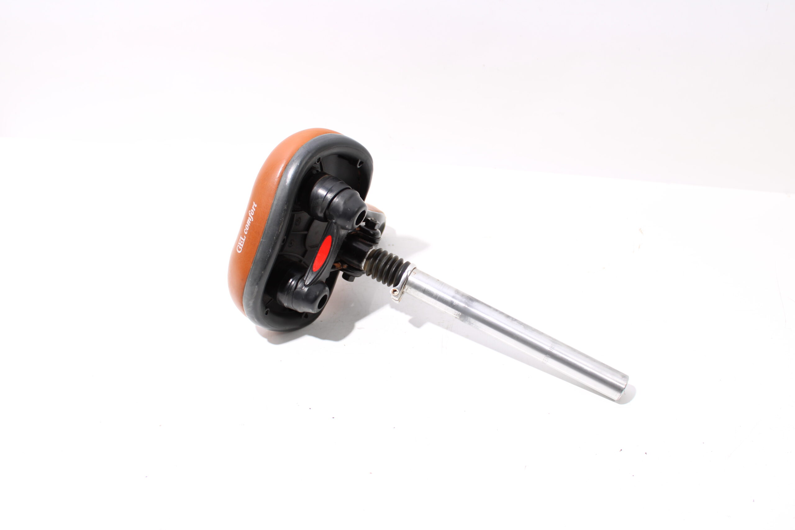 Artikel: zadel met verende zadelpen. Dit onderdeel is afkomstig van een Trek LM2+ elektrische fiets.